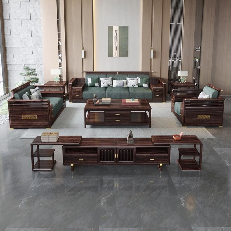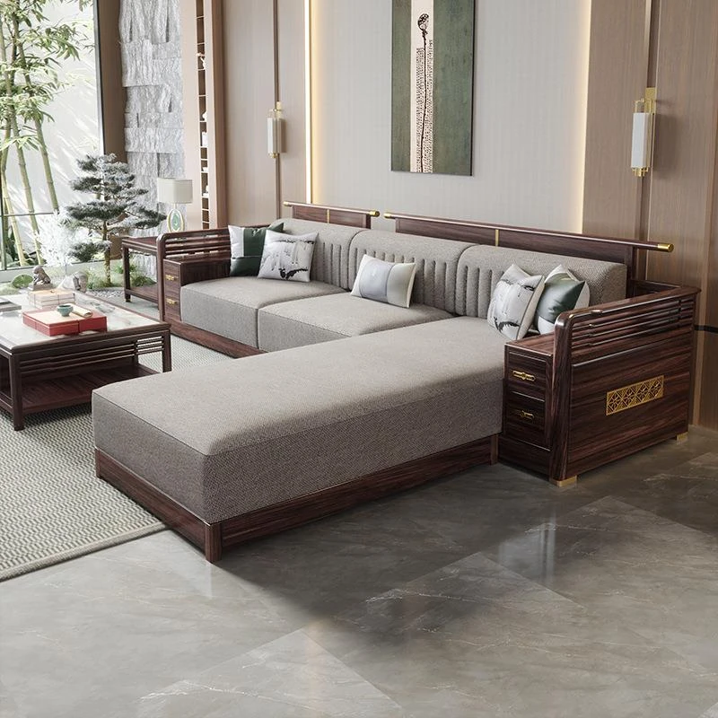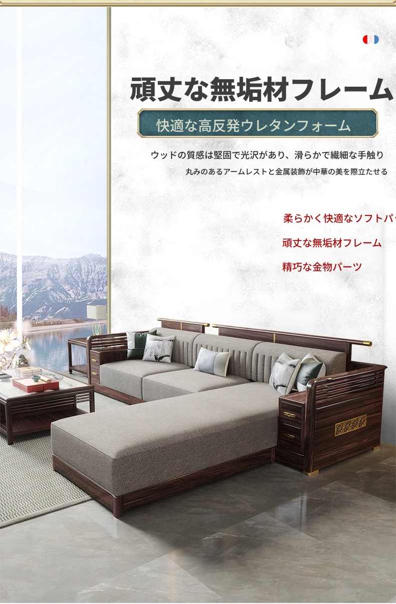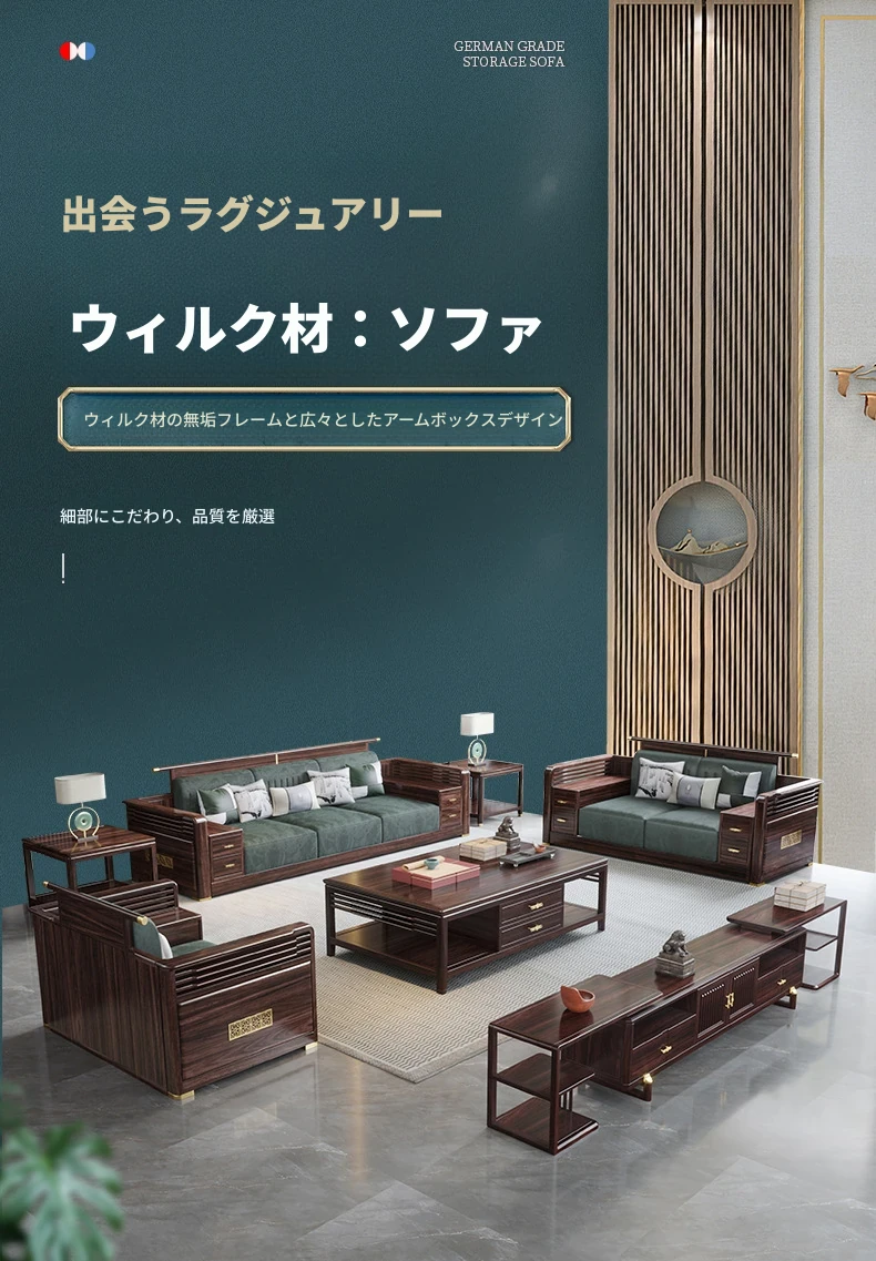 洗練された新中式デザインのウッディーソファセット!冬も夏も快適に過ごせる貴妃スタイルの収納ソファとおしゃれなローテーブルの組み合わせ。あなたのリビングを上品に彩ります。