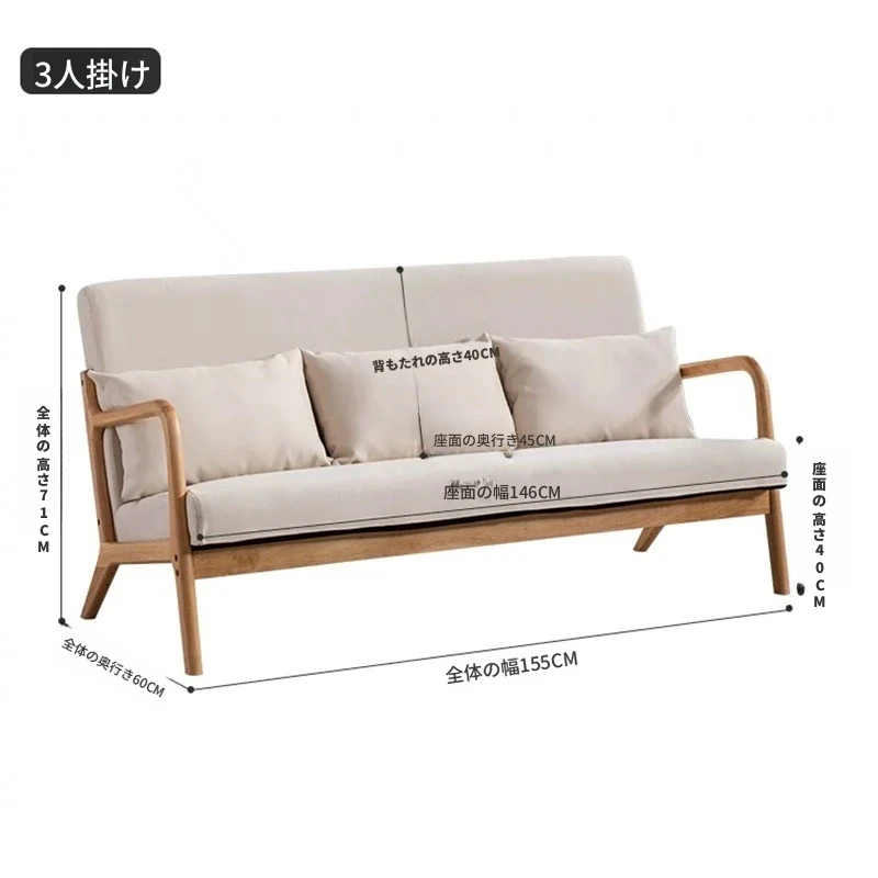 【アイボリー色】洗えるコットンリネン 天然木フレーム