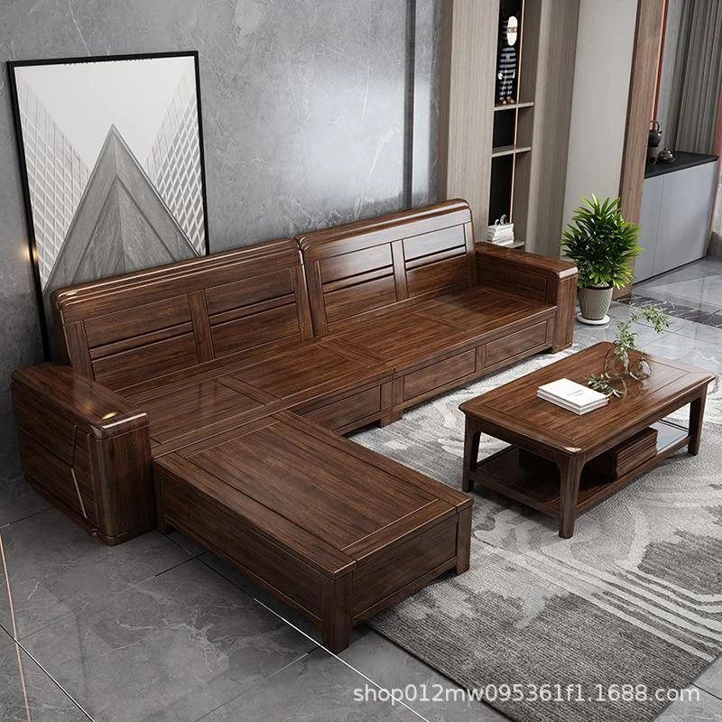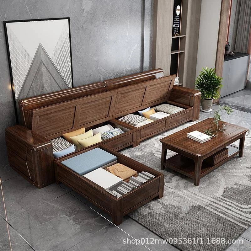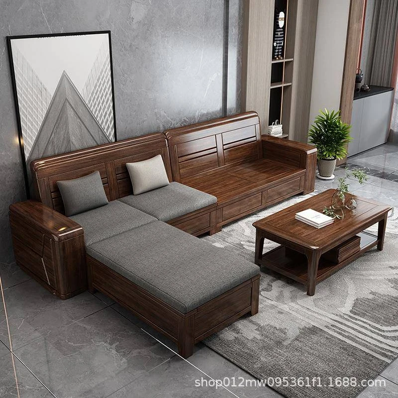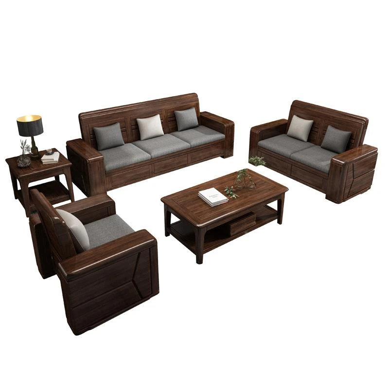 ウォールナット製中式実木ソファセット - 軽やかで豪華な現代的デザイン、布製で快適な座り心地。小型住宅にもぴったりな156951モデル。リビングルームをスタイリッシュに演出します!