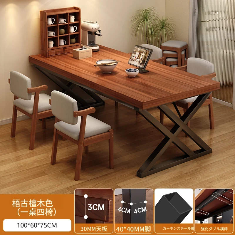 【主図組み合わせ商品】無垢材椅子*4 サンゴ古檀木色120*60*75cm