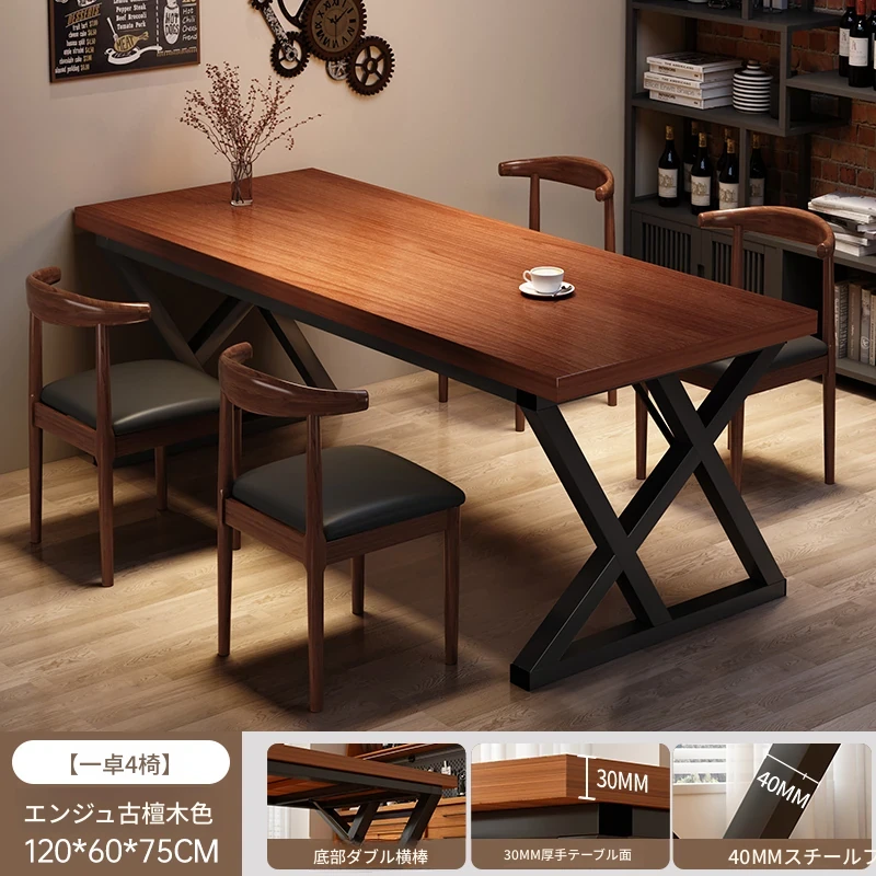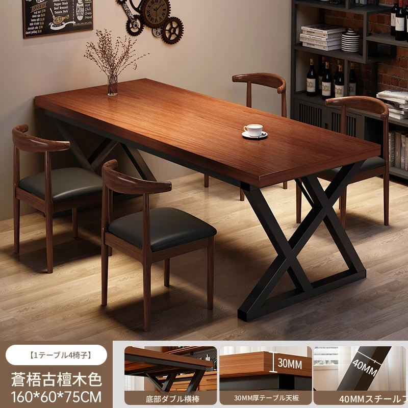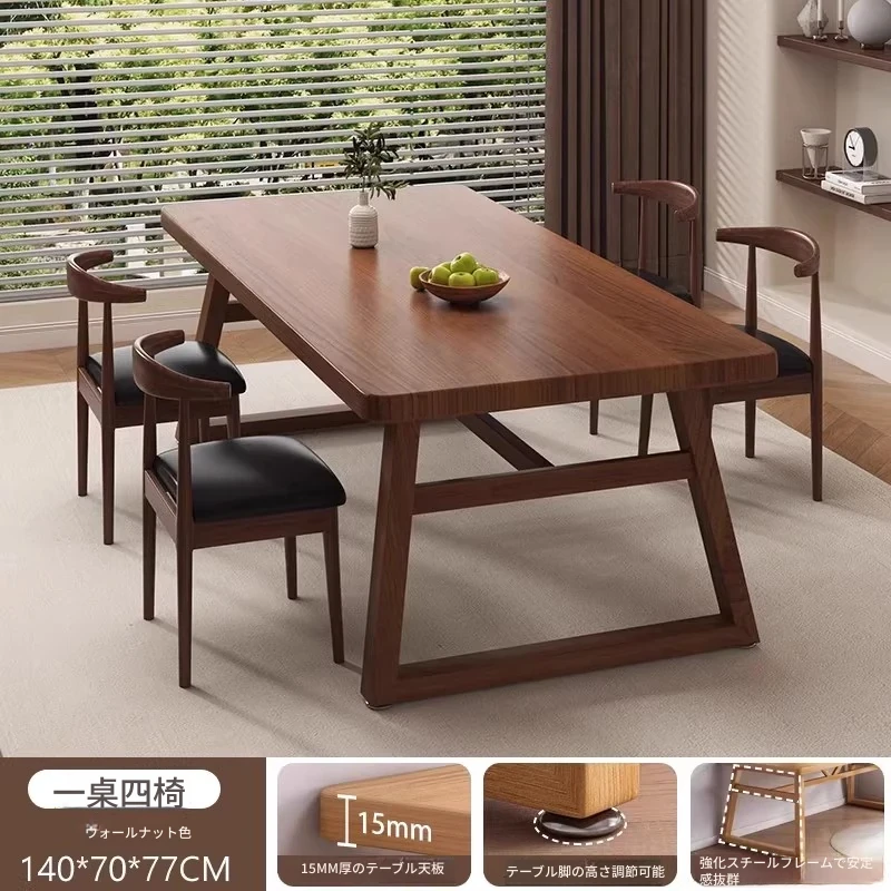 【一卓四椅*アイアン牛角椅子】ウォールナット色140*60*75cm