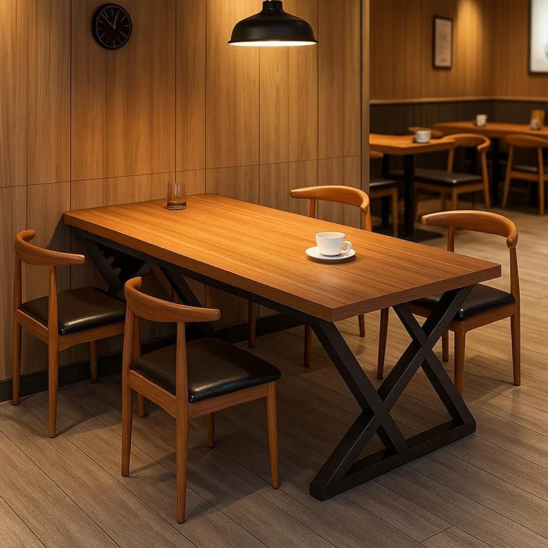新疆送料無料!商用長方形ダイニングテーブルセット - ファーストフード店やレストランに最適な食事テーブル&椅子コンビネーション!朝食店にもぴったり!快適でスタイリッシュな食事空間を演出します。