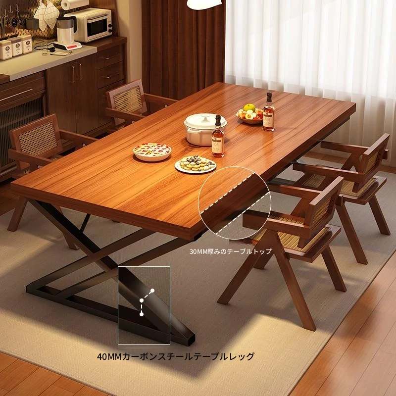 【主図組み合わせ商品】無垢材椅子*4 サンゴ古檀木色160*60*75cm