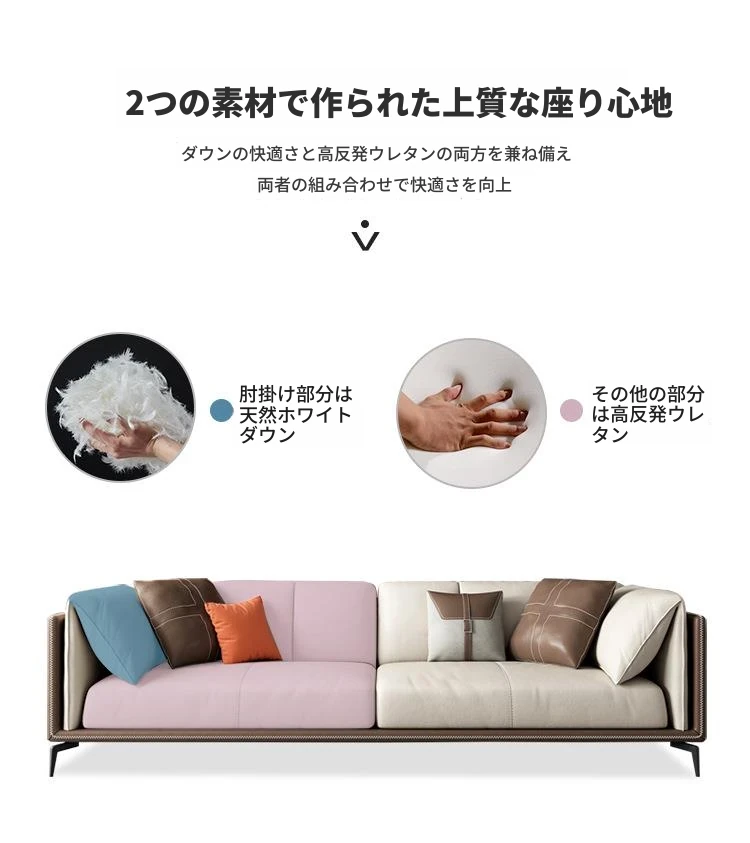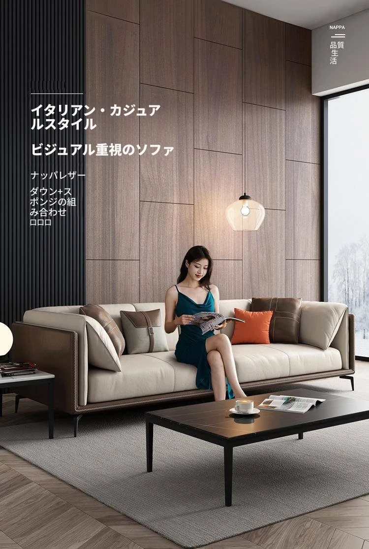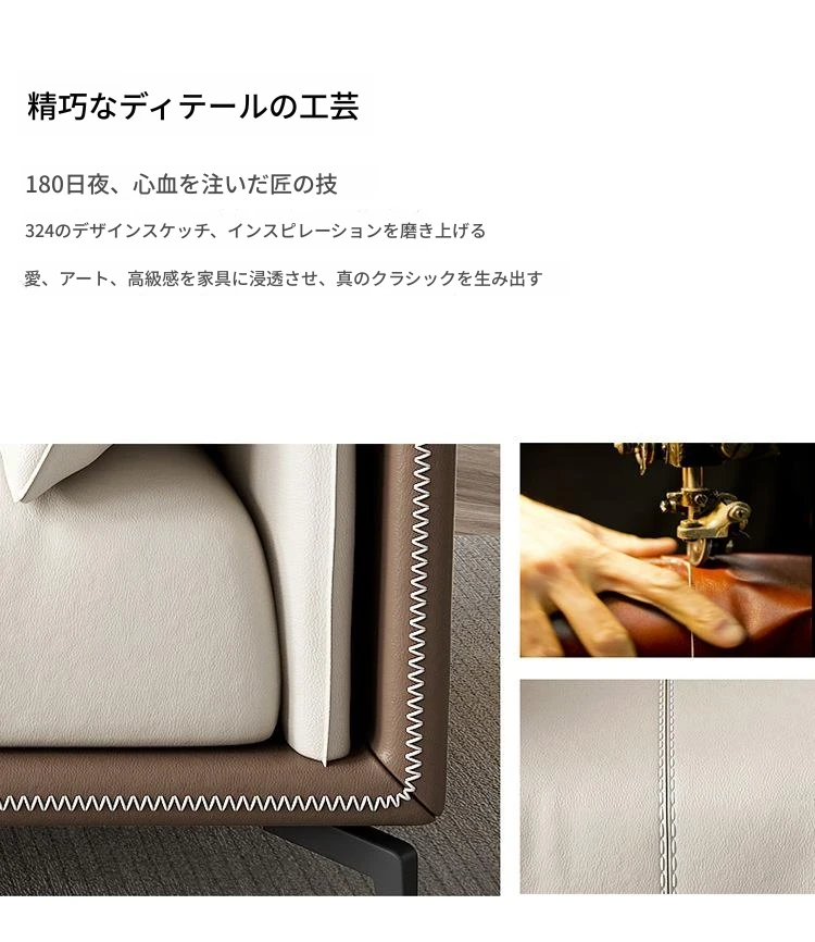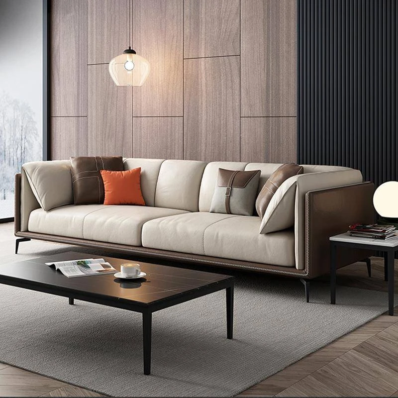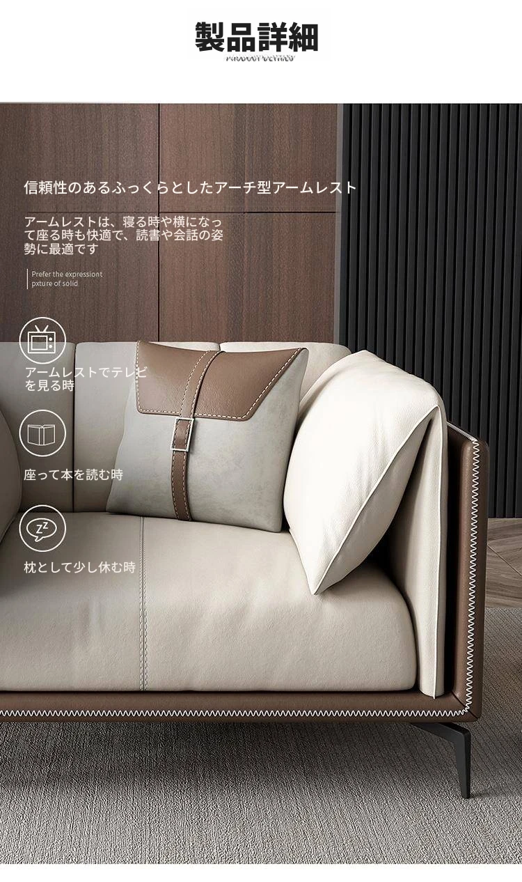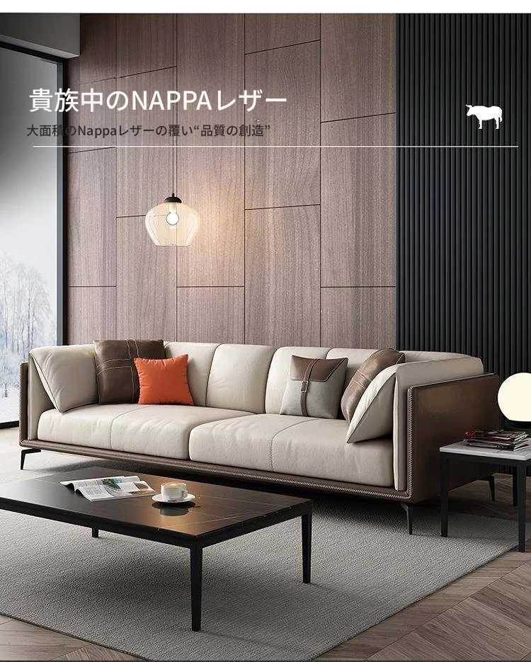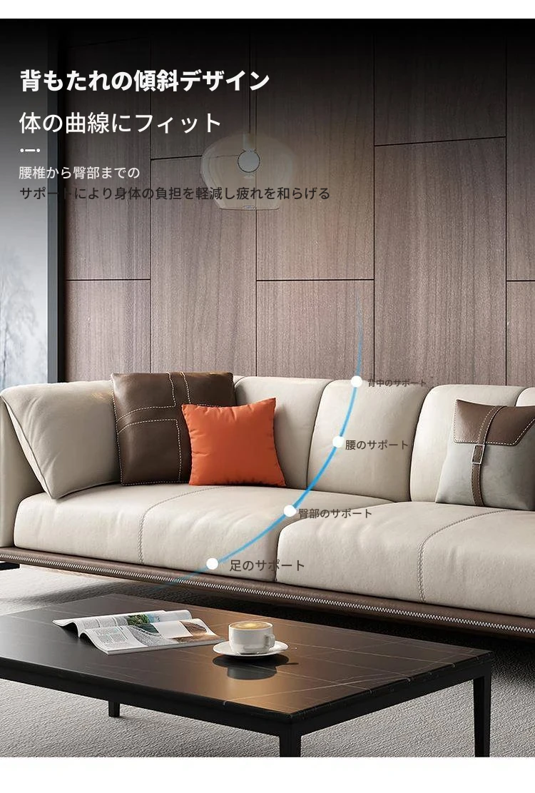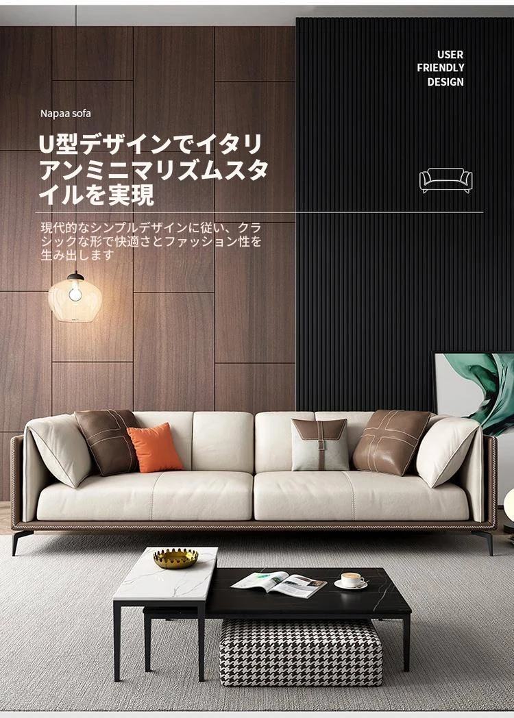 本革製イタリアンスタイルリビングセット|高品質トップグレインレザー使用|シンプルでモダンなデザイン|小型オフィスやホテルにも最適な皮革ソファ