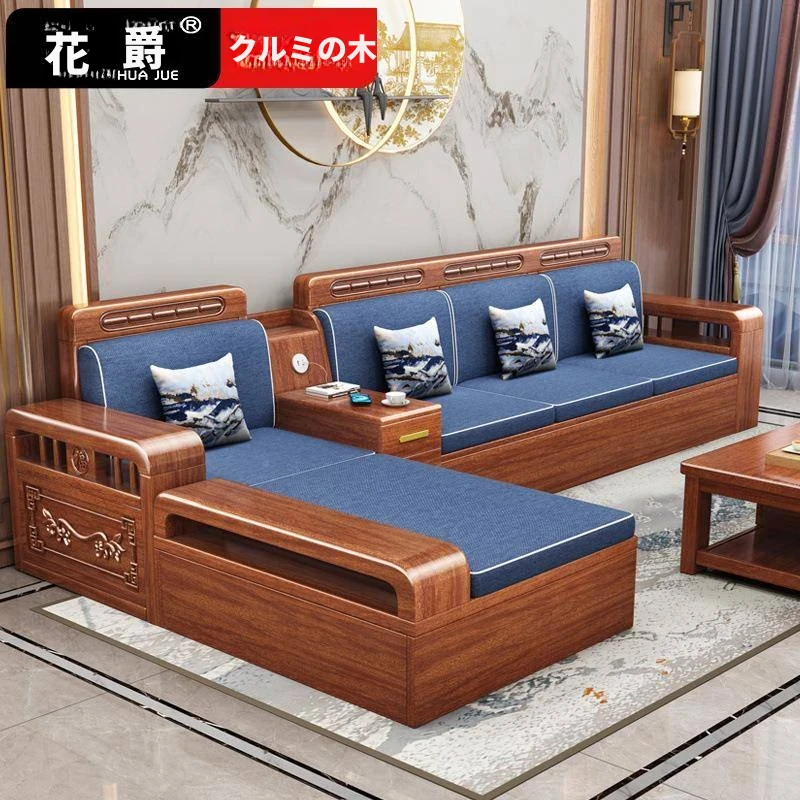 【花爵】三人用ソファ+貴妃椅+長いコーヒーテーブル+中箱