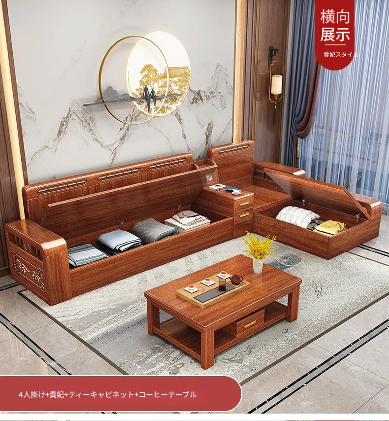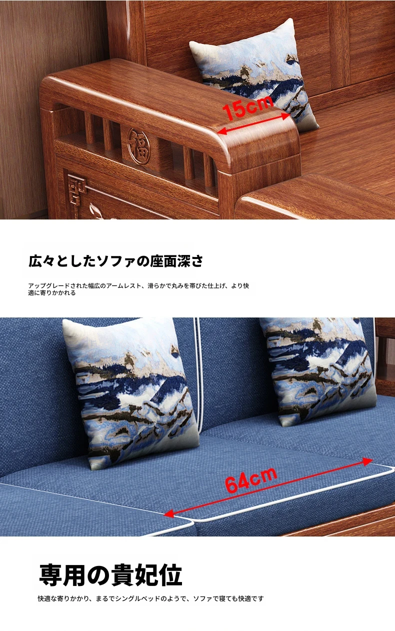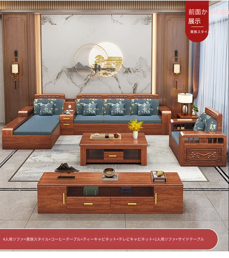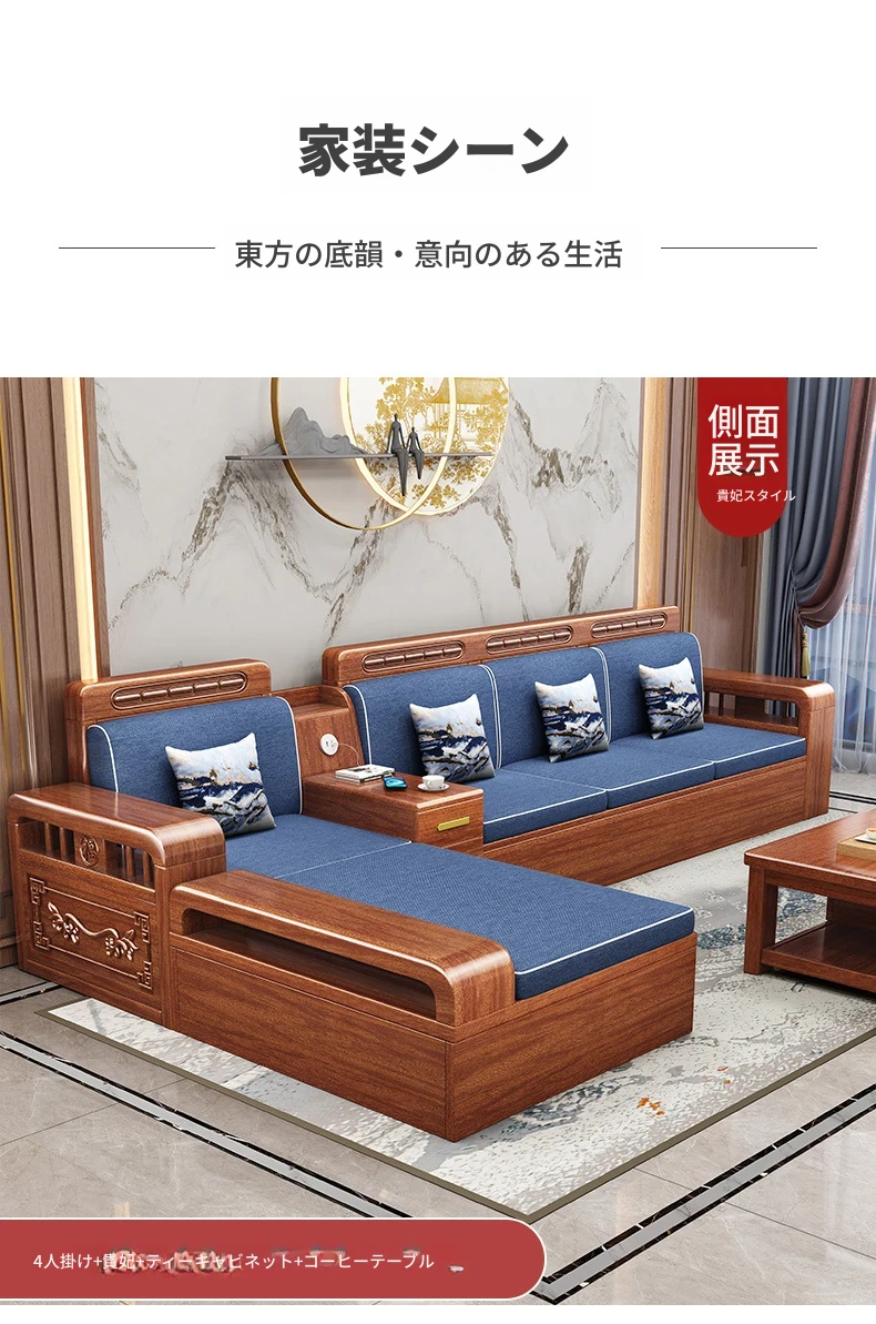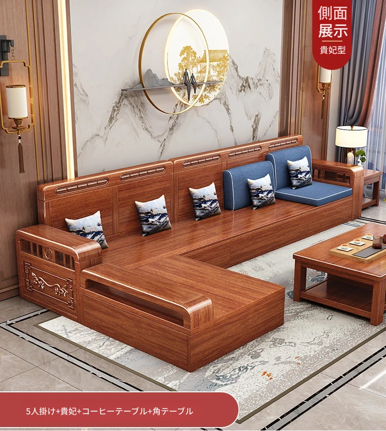 【3.9メートル】六人用ソファ+貴妃椅+コーヒーテーブル+ティーキャビネット