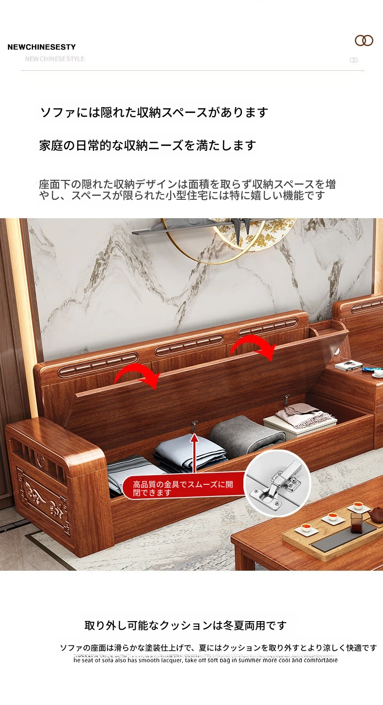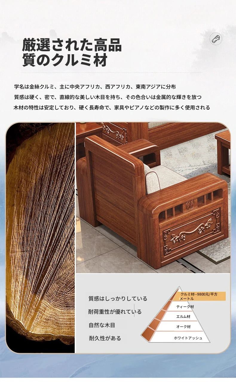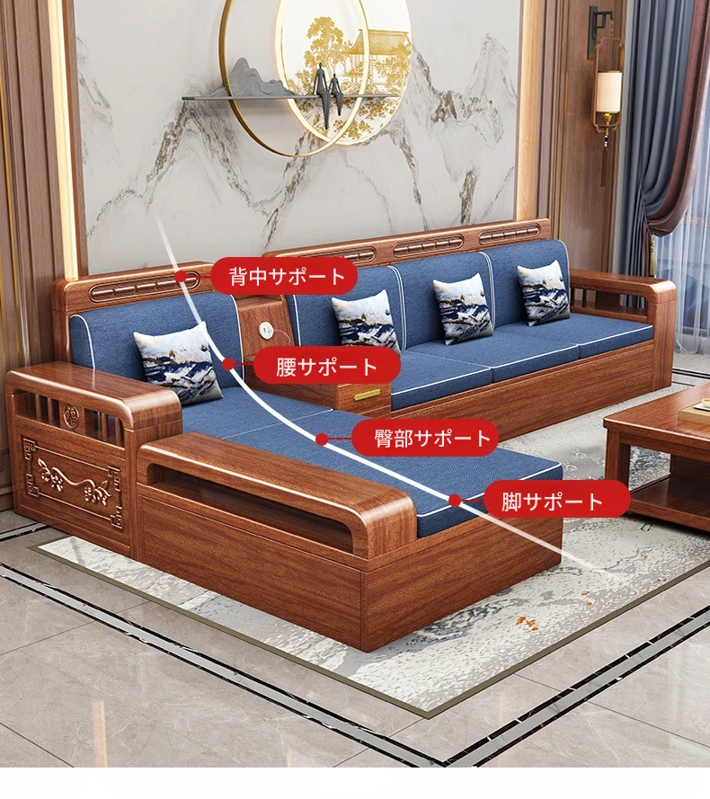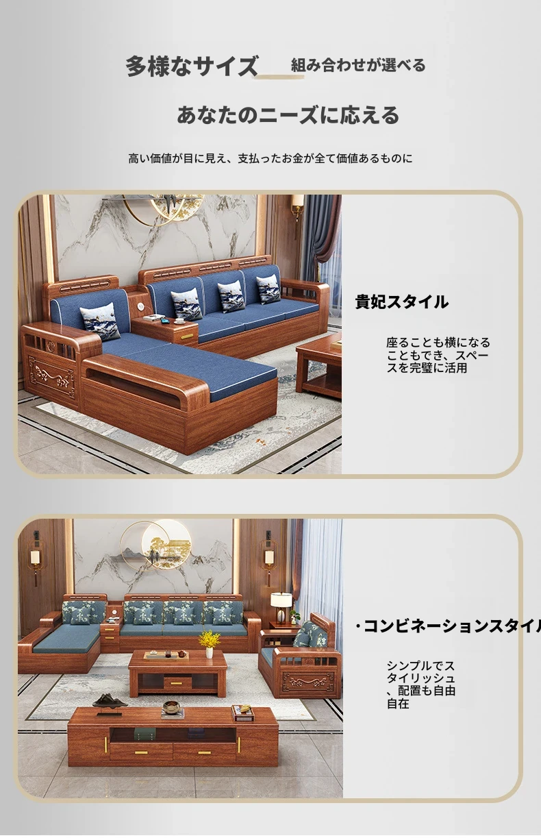【3.9メートル】六人用ソファ+貴妃椅+コーヒーテーブル+ティーキャビネット