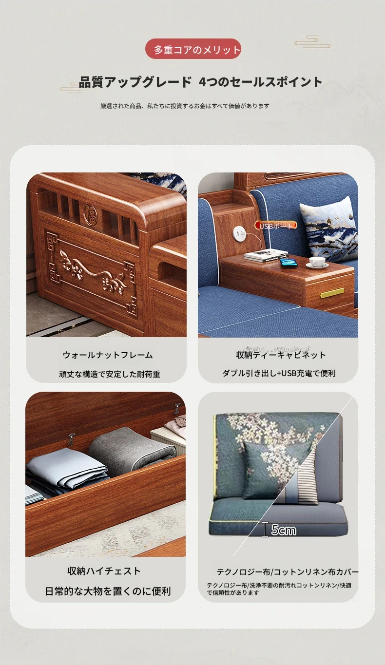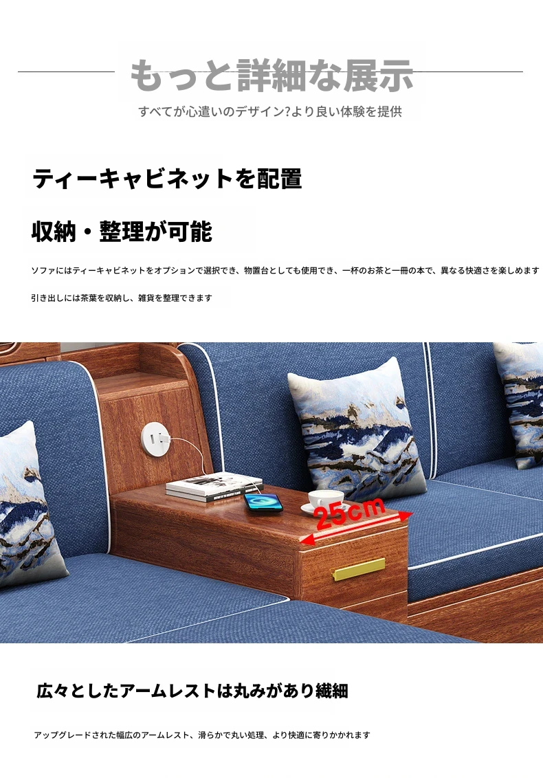 【3.75メートル】六人用ソファ+貴妃椅+引き出し付きコーヒーテーブル