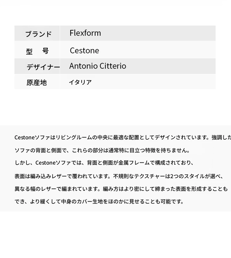 イタリア直輸入 正規品 Flexform Cestone モジュラーソファ 編み込みレザー仕上げ - 贅沢な快適さと洗練されたデザインで、あなたのリビングルームを特別な空間に変えます!