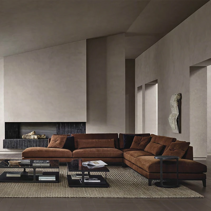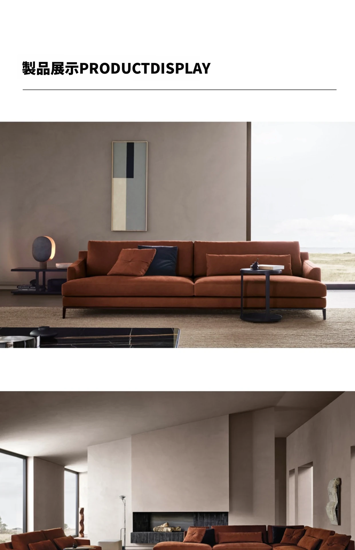 イタリアンミニマルデザインの本革ブレイザーソファ - スリムな小型住宅向け、デザイナーのスタジオルームに最適な高級ファブリックソファ!洗練されたスタイルで、居心地の良い空間を演出します。