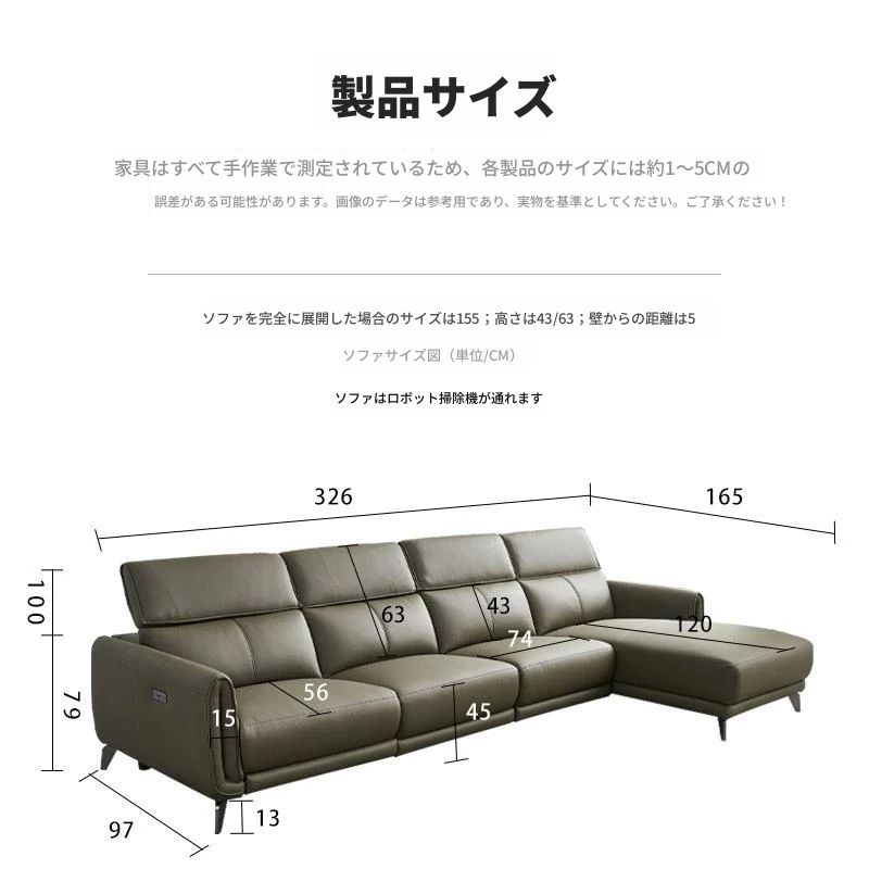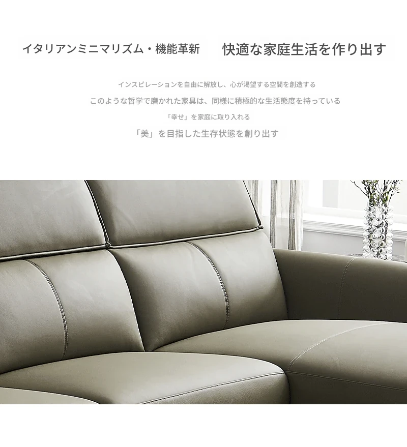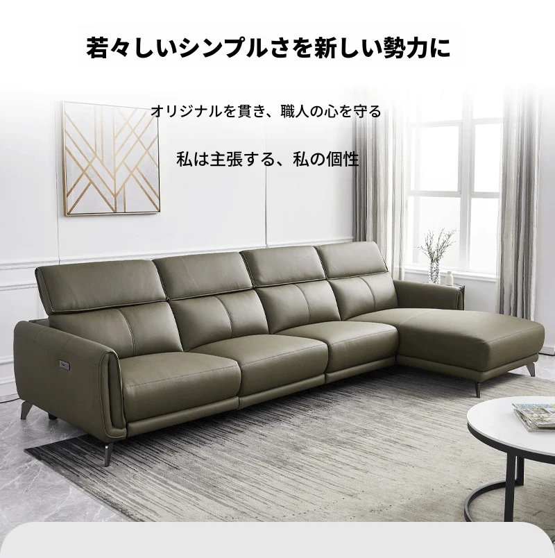 イタリアンミニマルスタイルの3人掛け本革ソファ USB電動ボタン付き L字型機能付きデイベッドソファで、快適なリラックスタイムを実現!