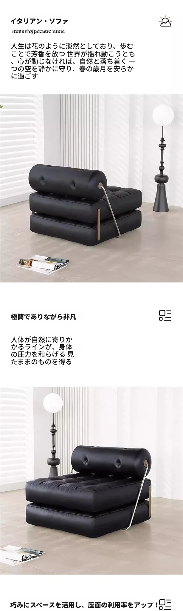 イタリアンミニマルデザインの本革ブレイザーソファ - スリムな小型住宅向け、デザイナーのスタジオルームに最適な高級ファブリックソファ!洗練されたスタイルで、居心地の良い空間を演出します。