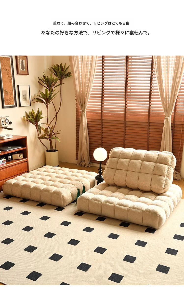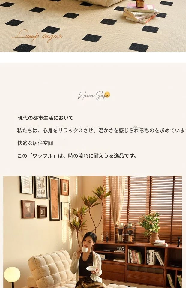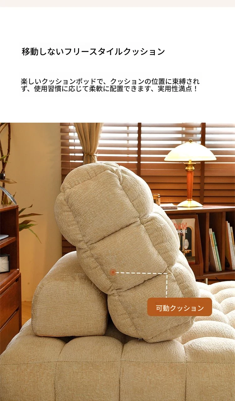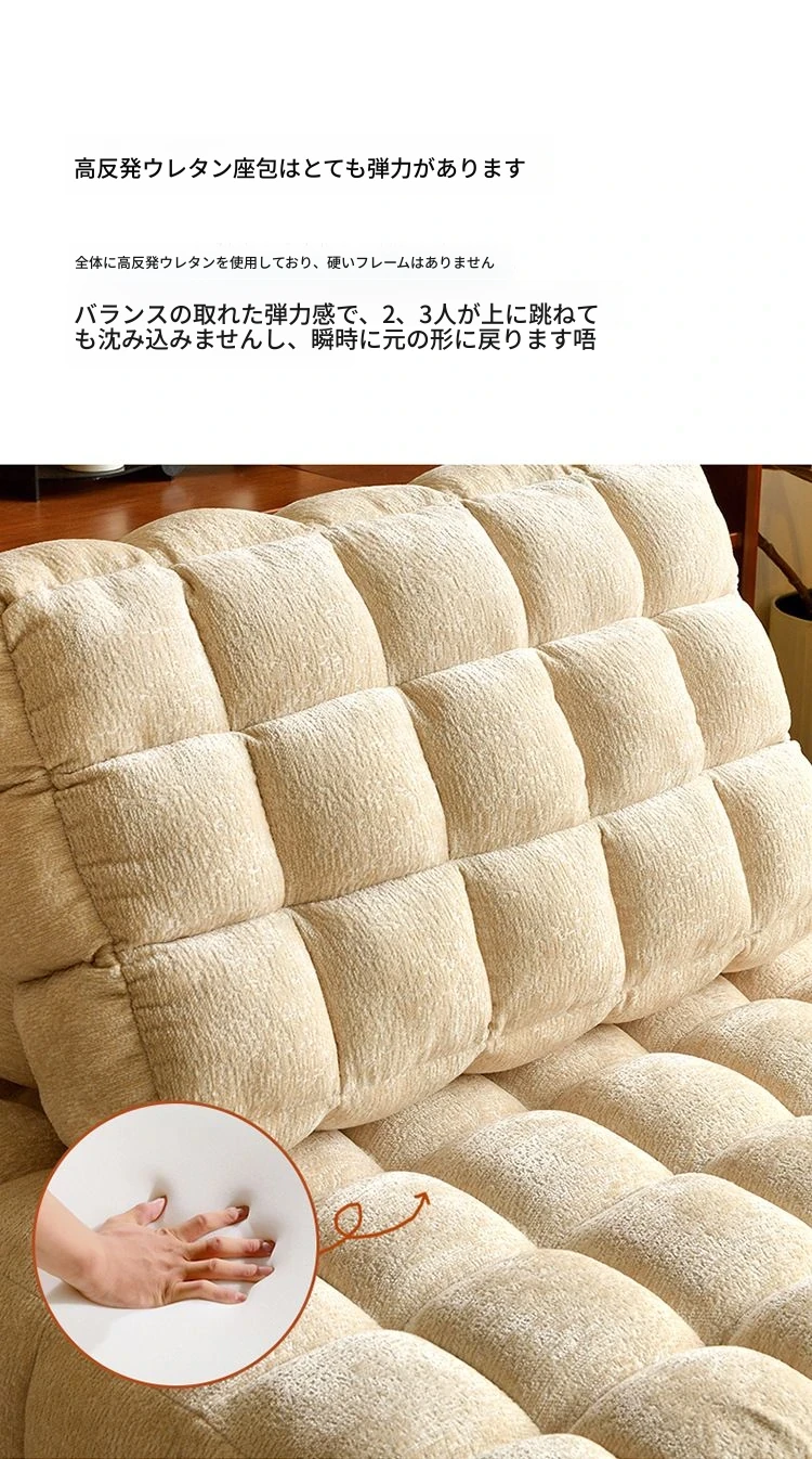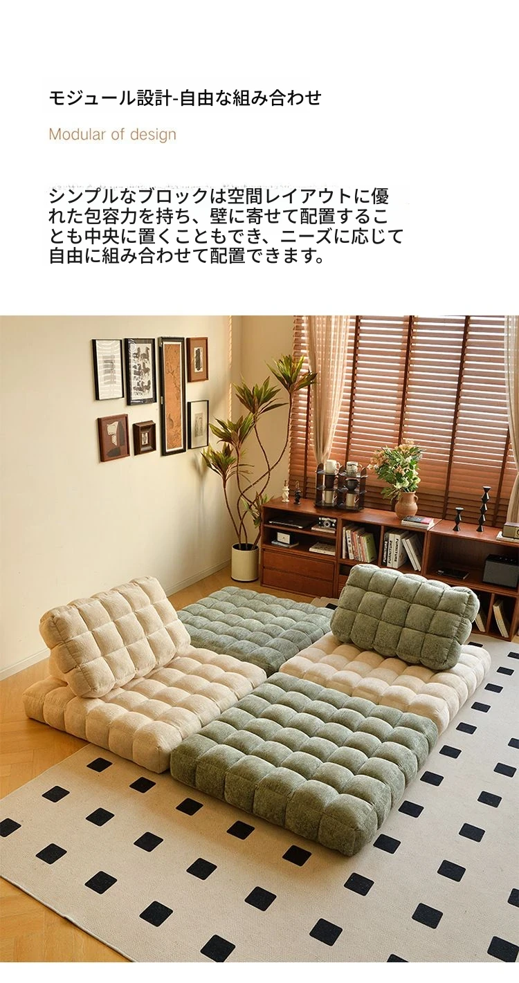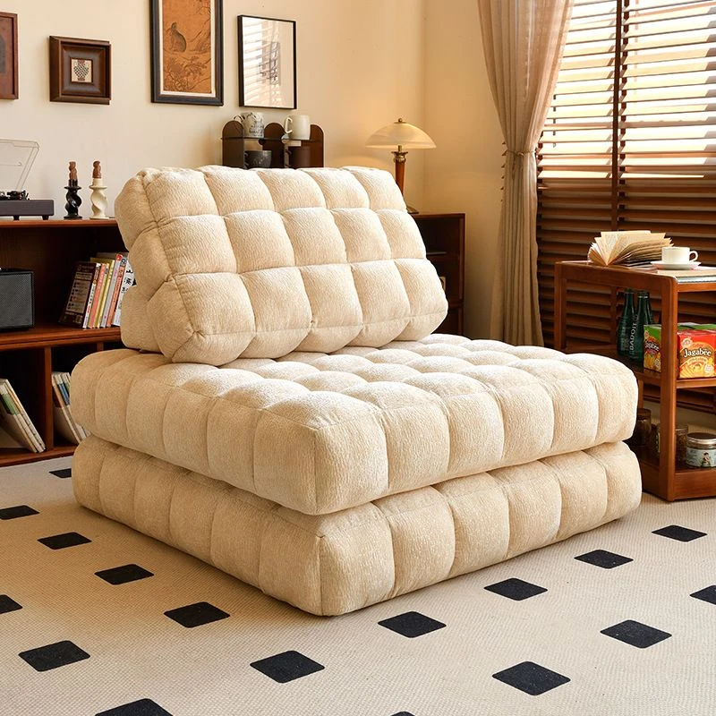 ふわふわワッフルクッションソファ!簡単に組み合わせ可能なタタミスタイルのクリーム風一人用リビングモジュールソファ。おしゃれで快適な豆腐ブロックデザインで、リラックスした時間をお楽しみください!