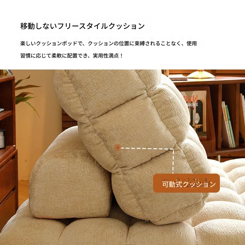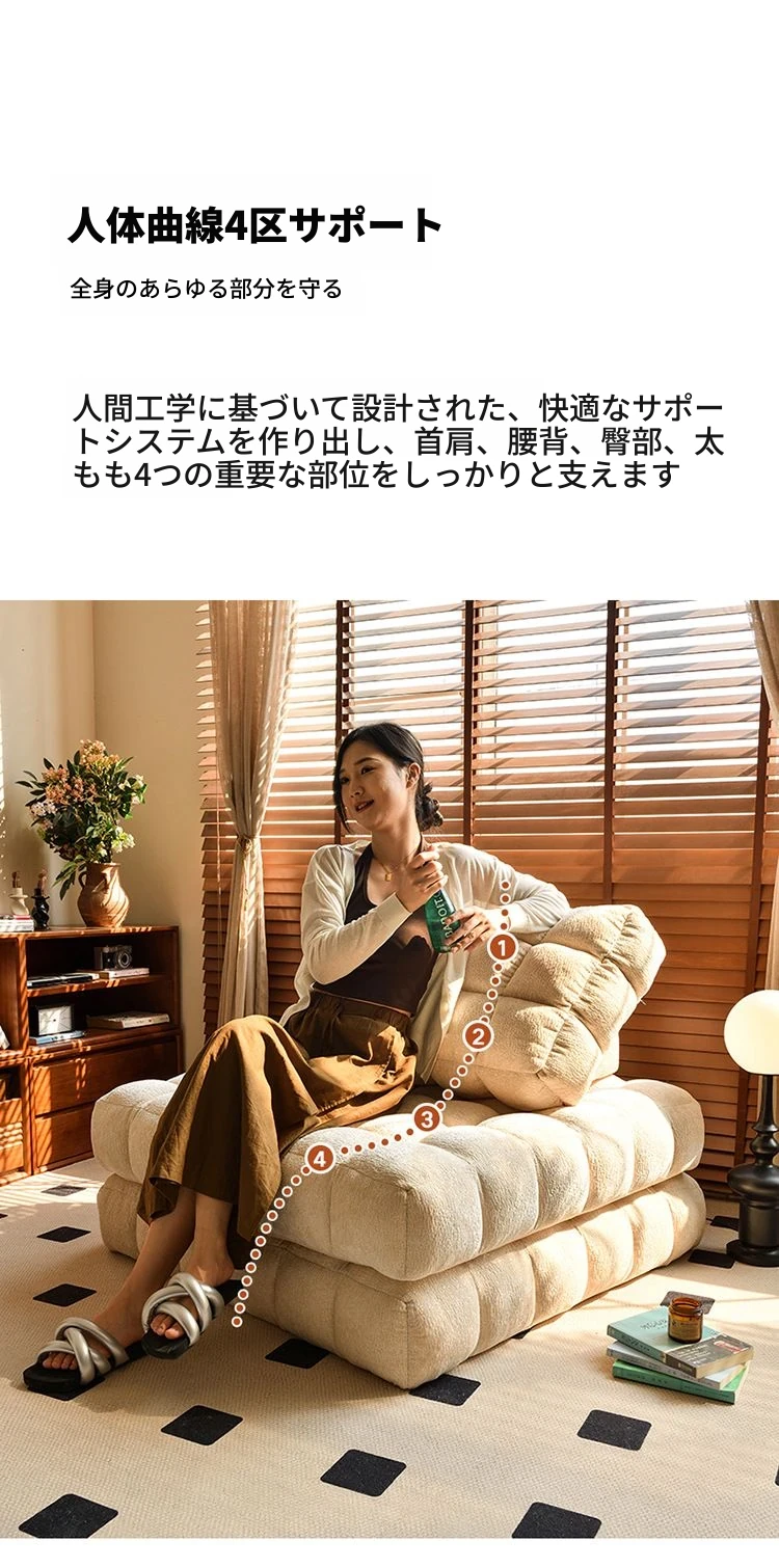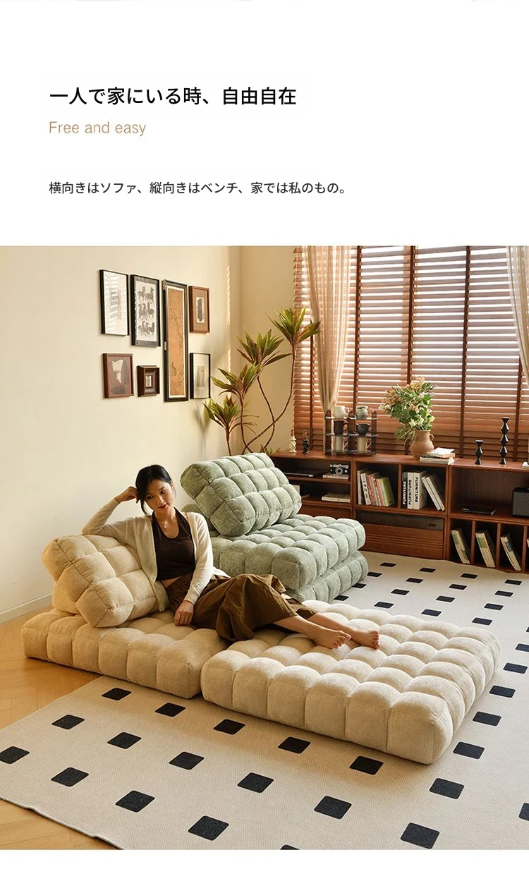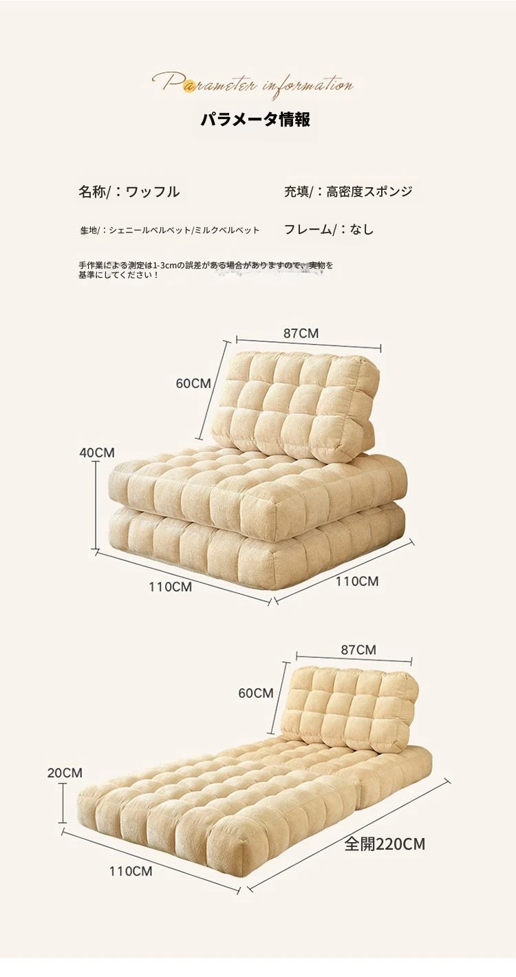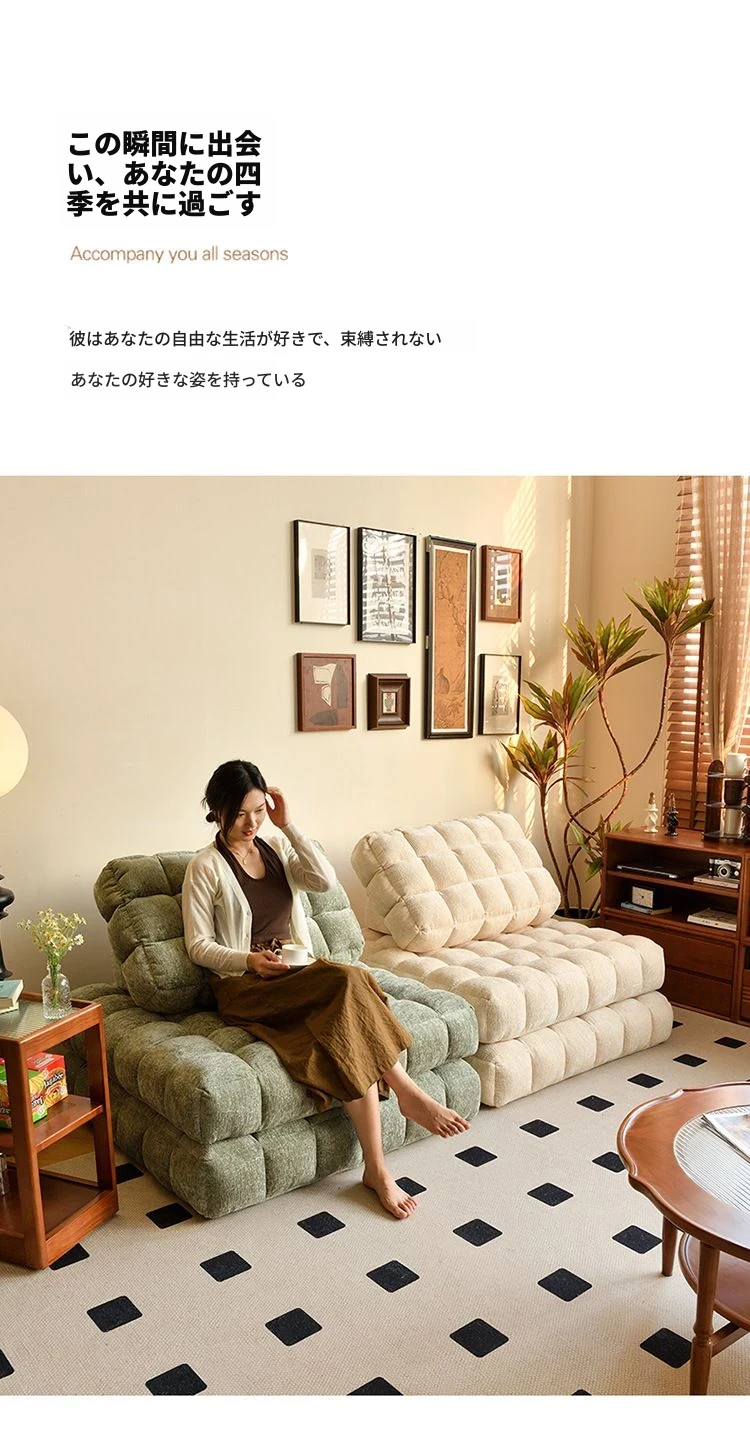 ふわふわワッフルクッションソファ!簡単に組み合わせ可能なタタミスタイルのクリーム風一人用リビングモジュールソファ。おしゃれで快適な豆腐ブロックデザインで、リラックスした時間をお楽しみください!