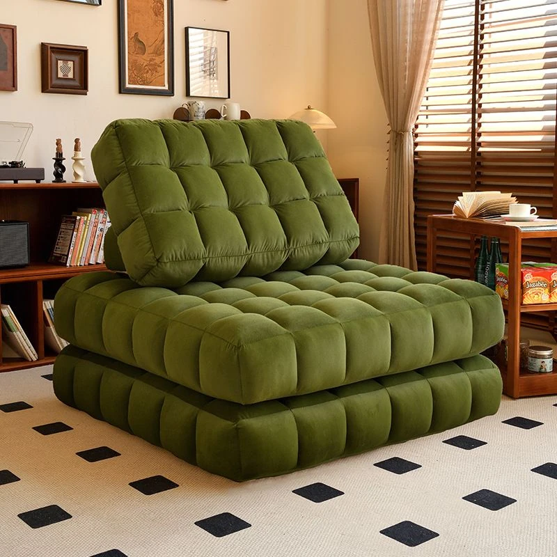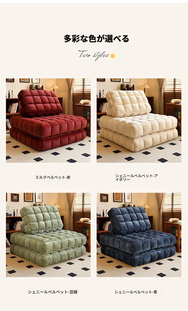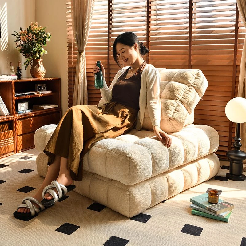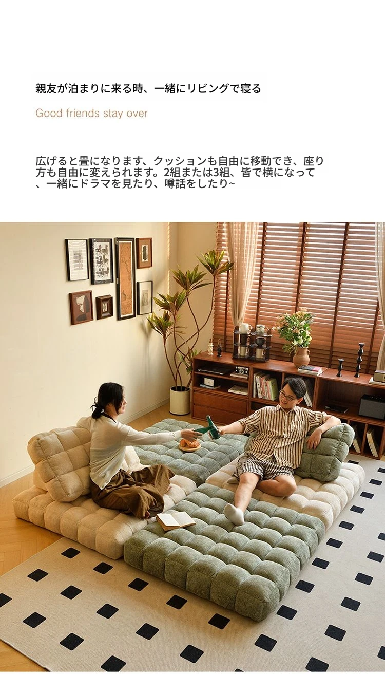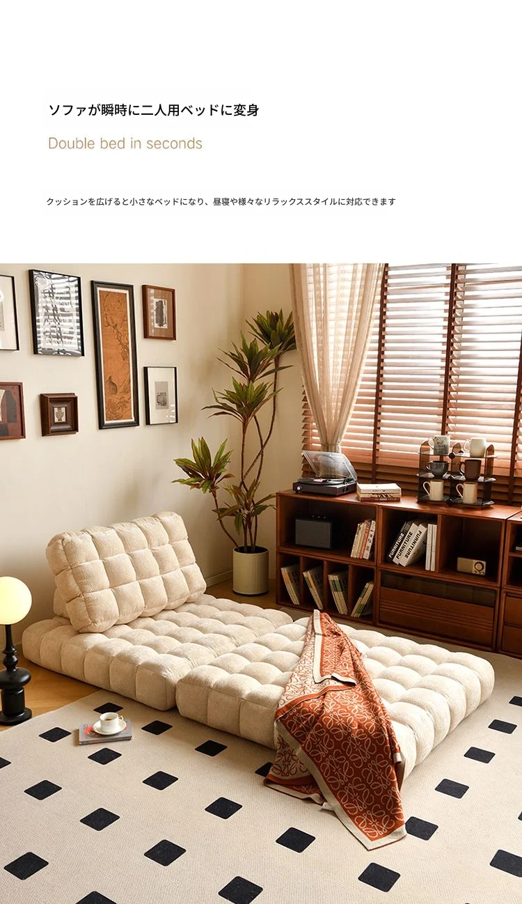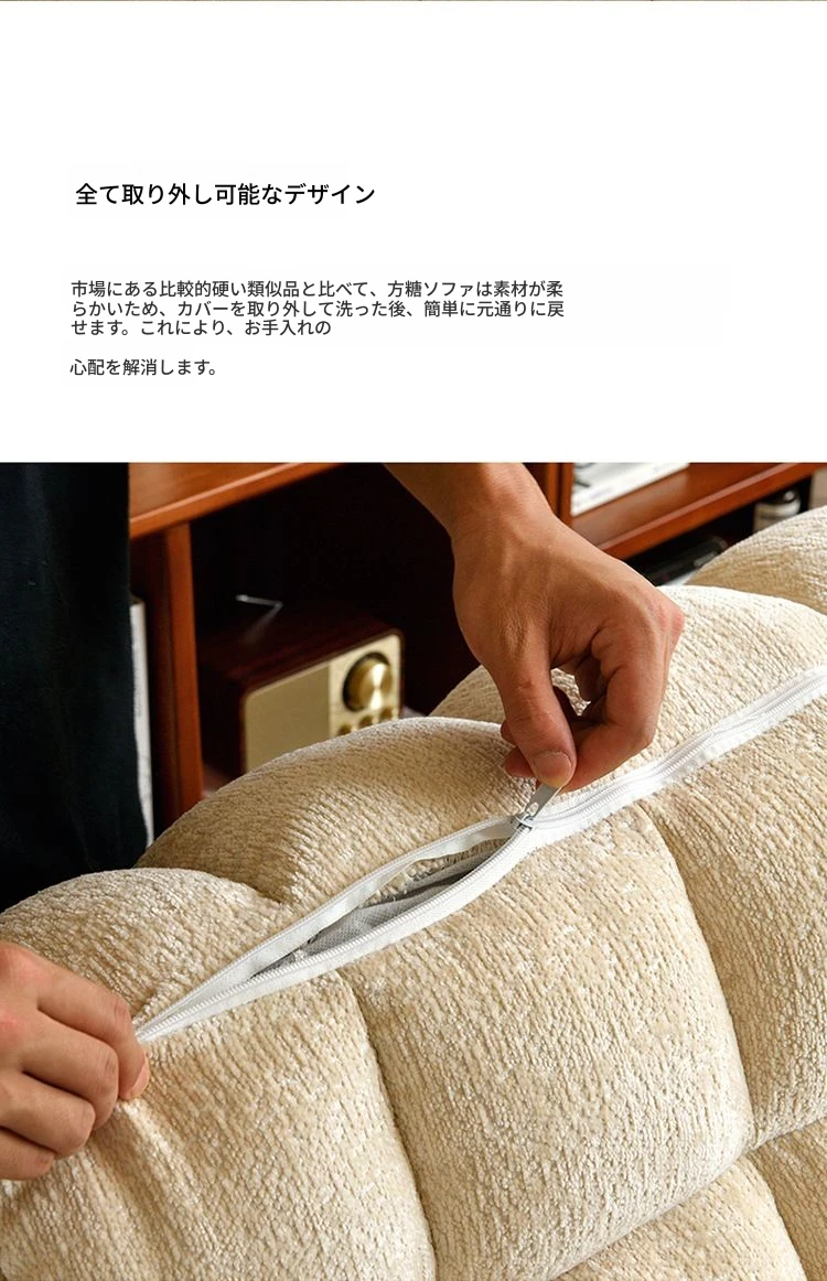 ふわふわワッフルクッションソファ!簡単に組み合わせ可能なタタミスタイルのクリーム風一人用リビングモジュールソファ。おしゃれで快適な豆腐ブロックデザインで、リラックスした時間をお楽しみください!
