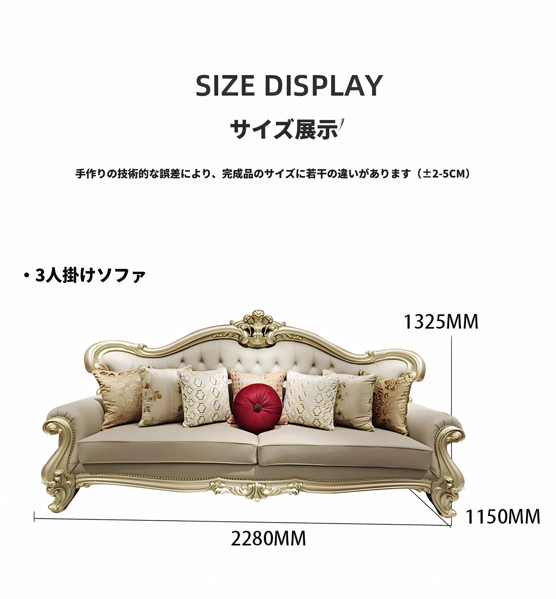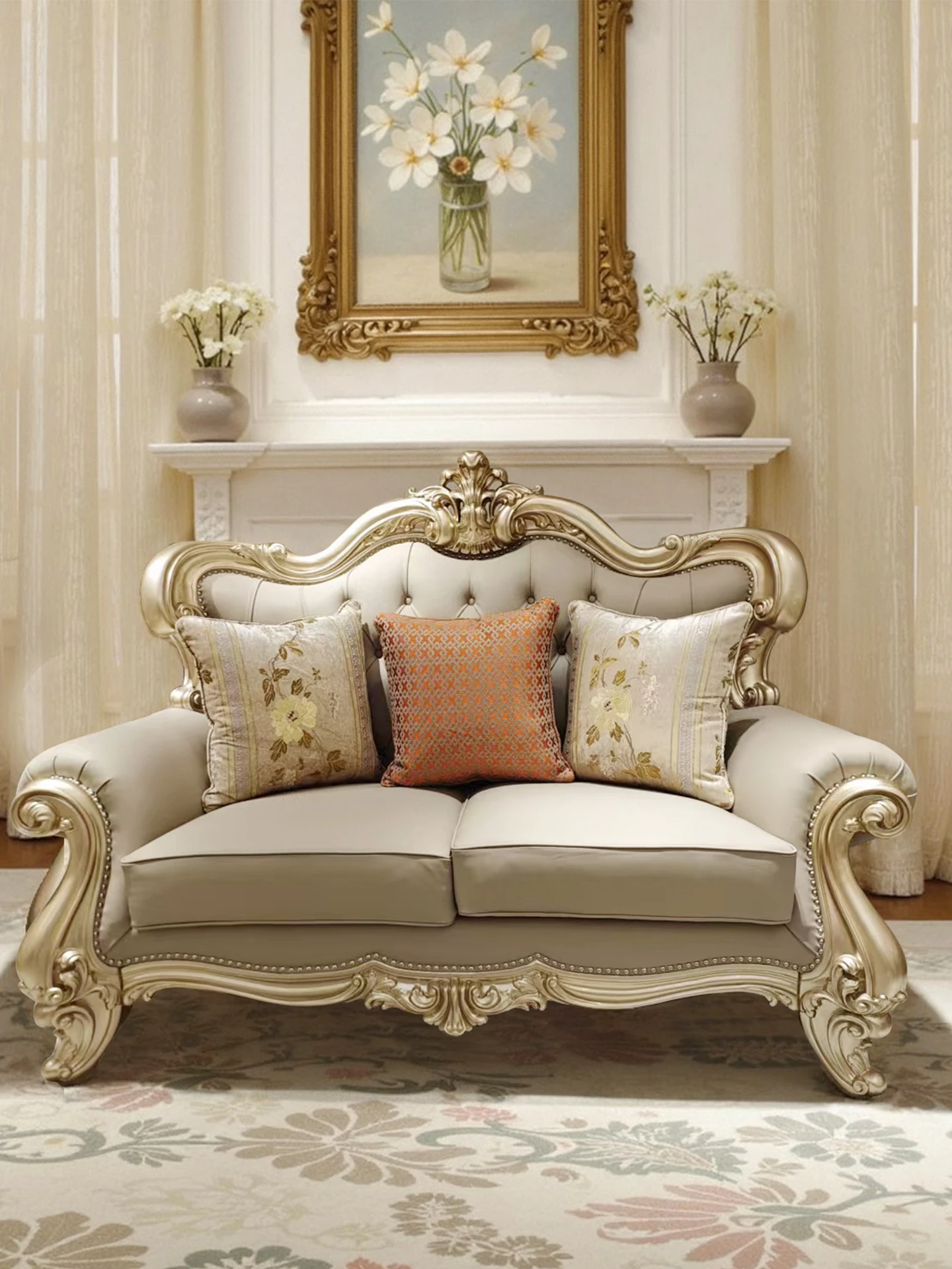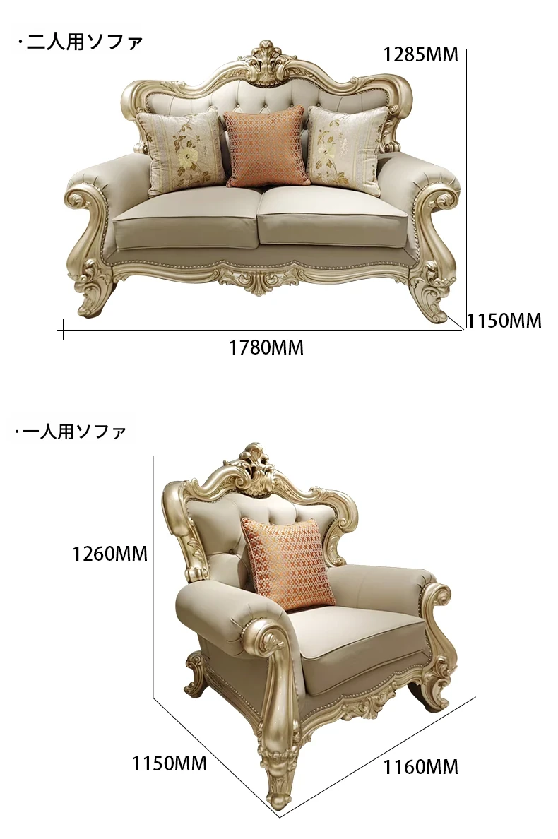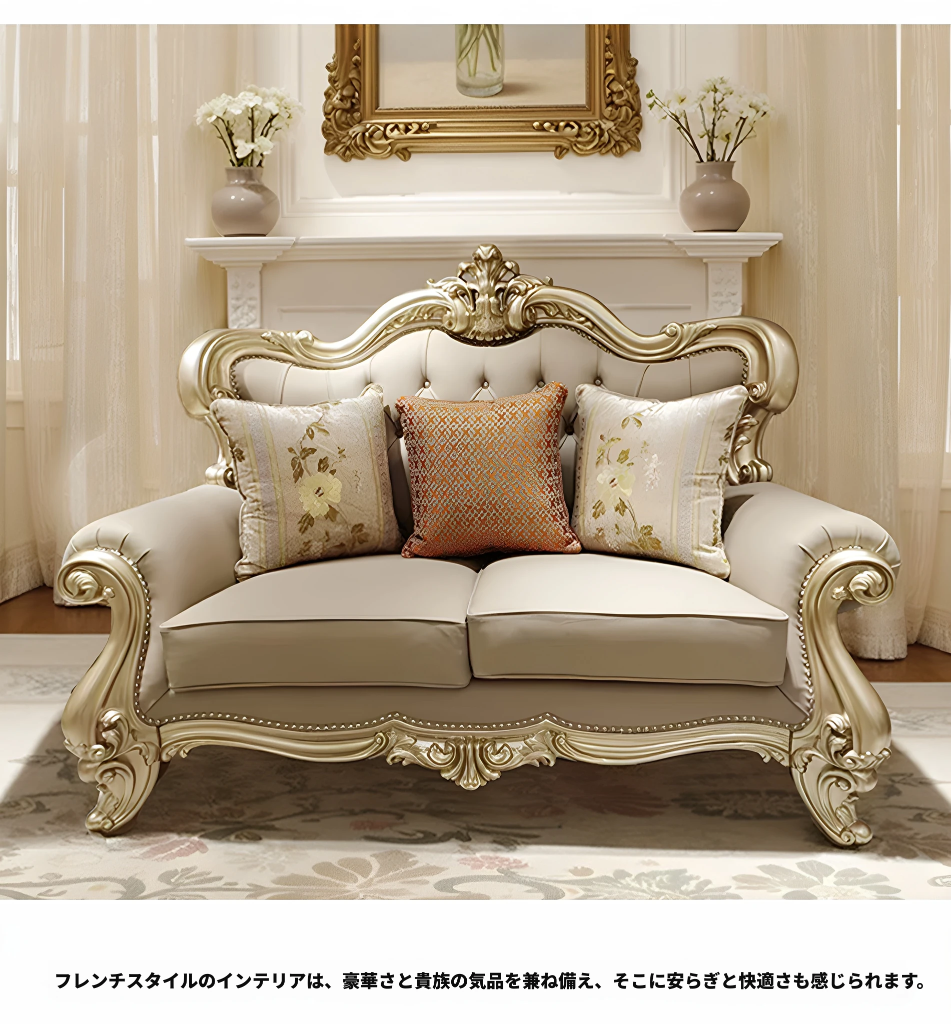 軽やかなフレンチスタイルのソファ!欧州風の本革リビングルーム用コンビネーション、アメリカンスタイルの無垢材彫刻付き最高級牛革ソファ。豪華な別荘にぴったりの逸品です!