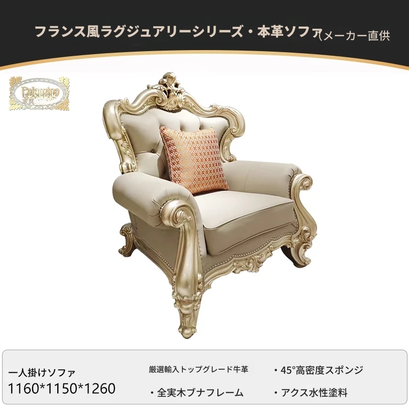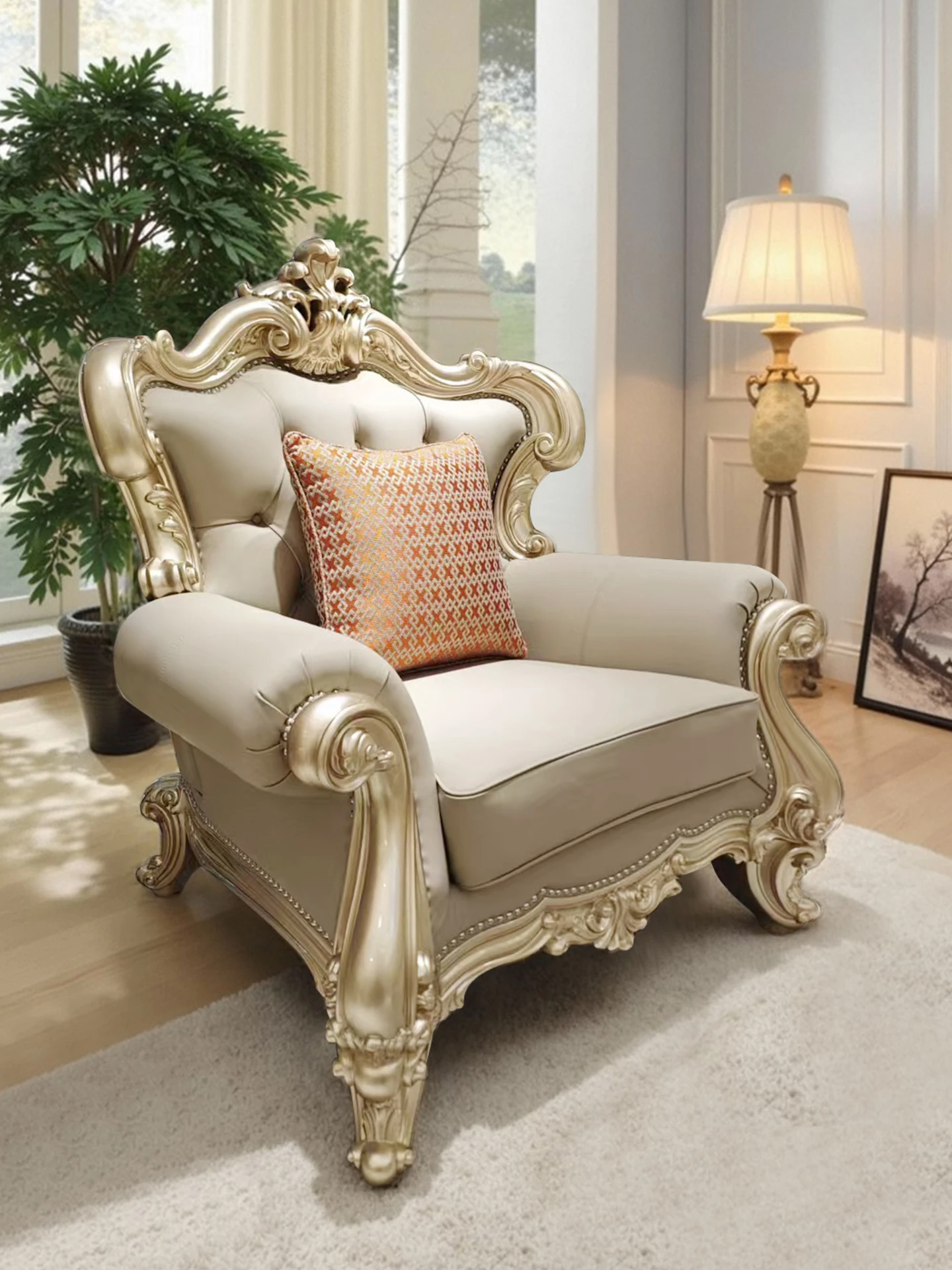 シャンパンカラーラグジュアリー本革ソファ1人掛け