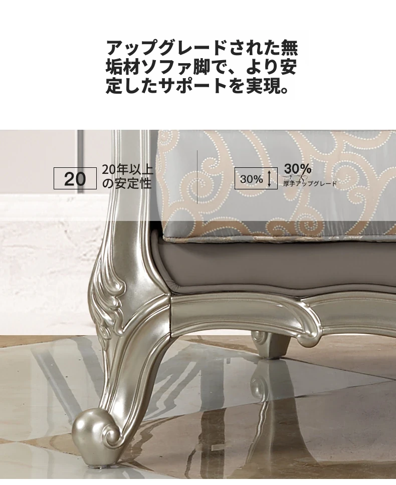 ライトグレー フレンチシック ロマンティック カウチソファ