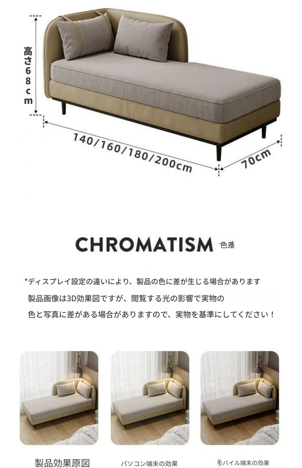 デフォルト左肘掛け★140x70x68cm(アイボリー) クッション付き