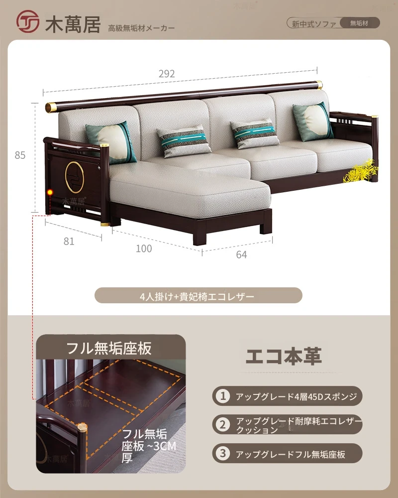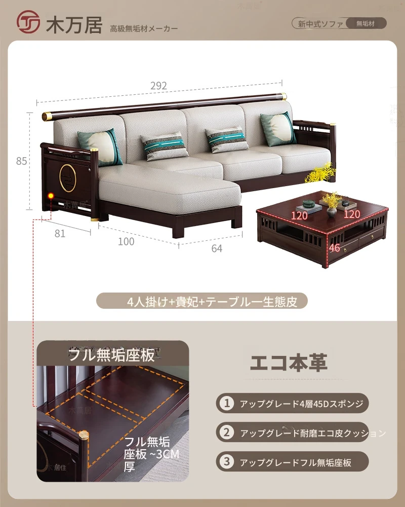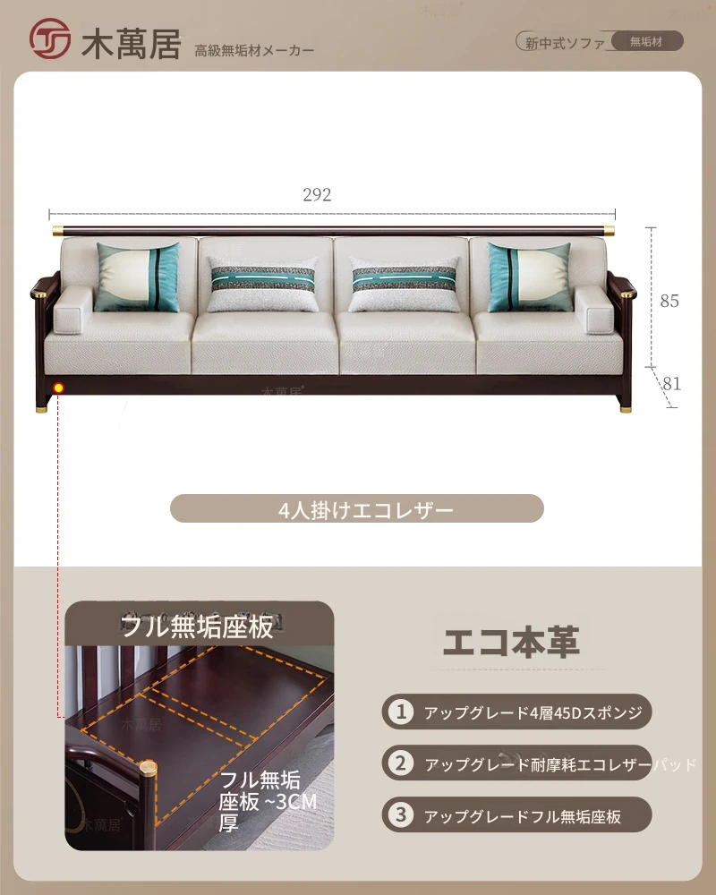 4人用【4層45Dウレタン+耐摩耗エコレザー+フル無垢板】