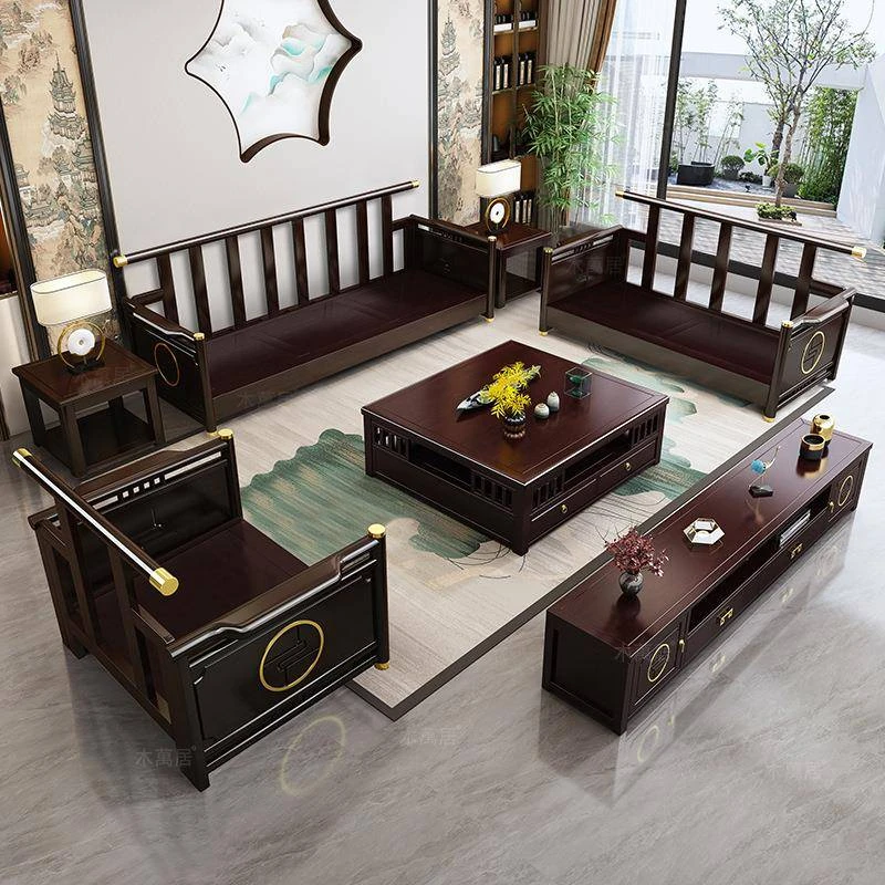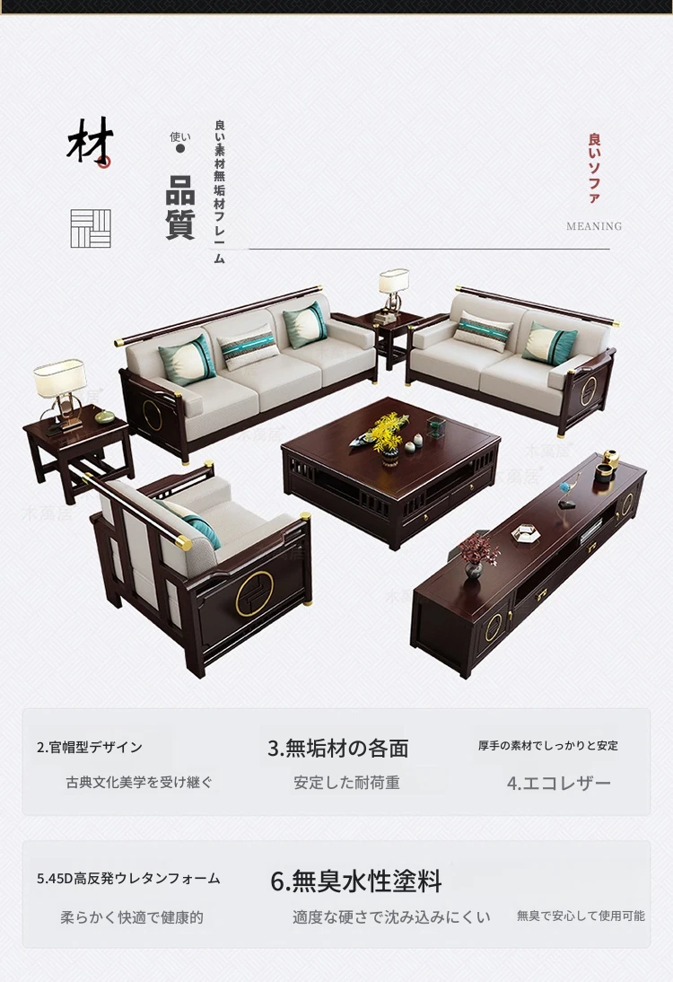 5人用+カウチ+ローテーブル+角テーブル*2【4層45Dウレタン+耐摩耗エコレザー+フル無垢板】