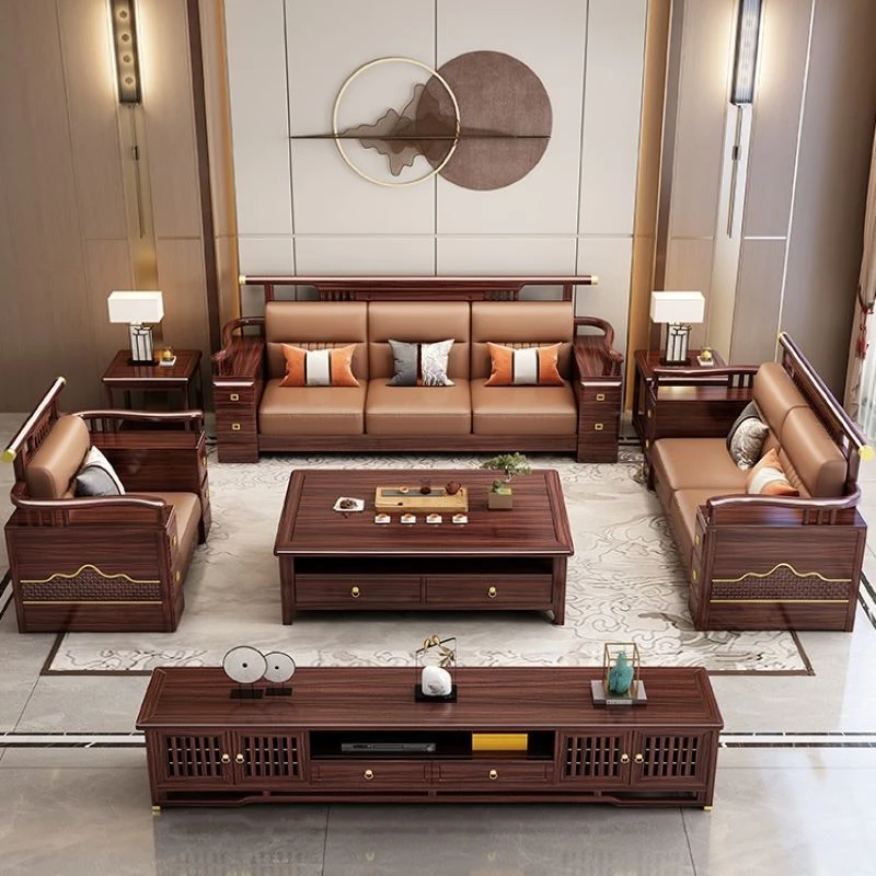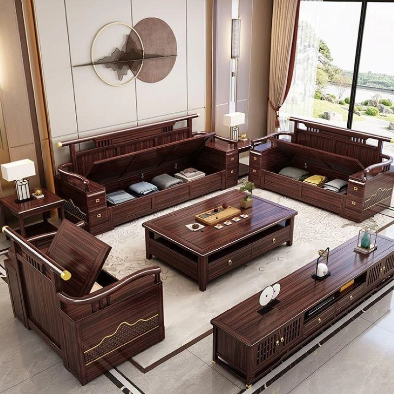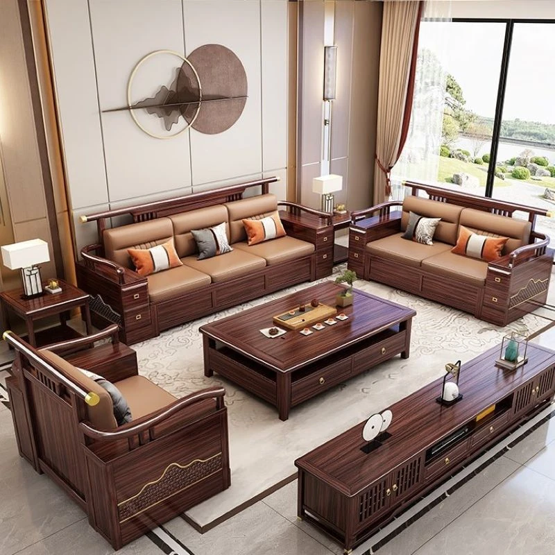 新中式ウルジン材全実木ソファセット - モダンでラグジュアリーな大邸宅にぴったり!シンプルでありながら高級感溢れるデザイン、リビングを華やかに演出します。