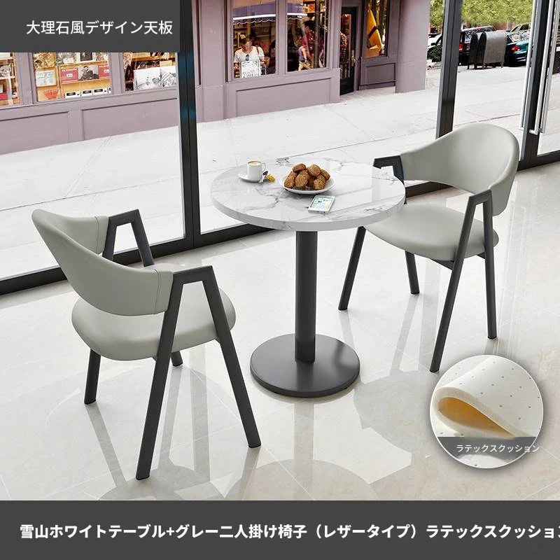 グレー二人掛け椅子+雪山ホワイトテーブル(レザータイプ)ラテックスクッション