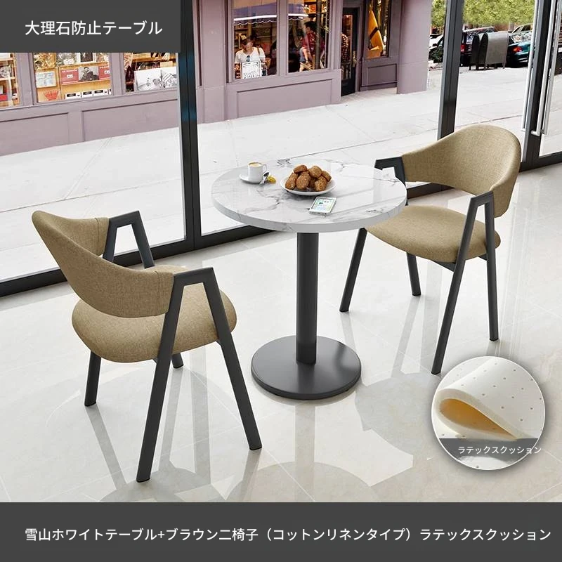 コーヒー色二人掛け椅子+雪山ホワイトテーブル(コットンリネンタイプ)ラテックスクッション