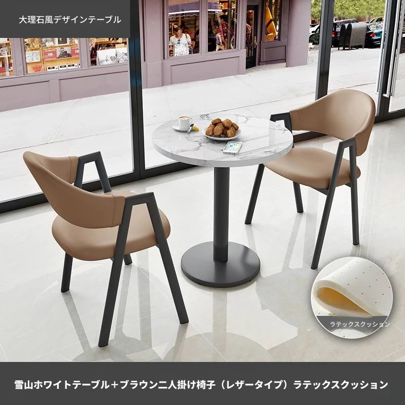 コーヒー色二人掛け椅子+雪山ホワイトテーブル(レザータイプ)ラテックスクッション
