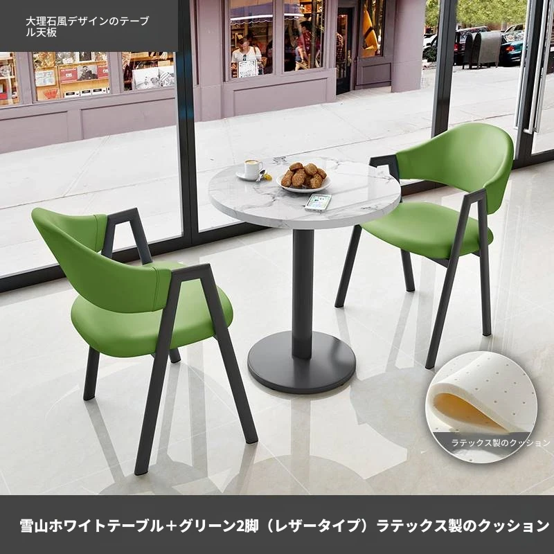 緑色二人掛け椅子+雪山ホワイトテーブル(レザータイプ)ラテックスクッション