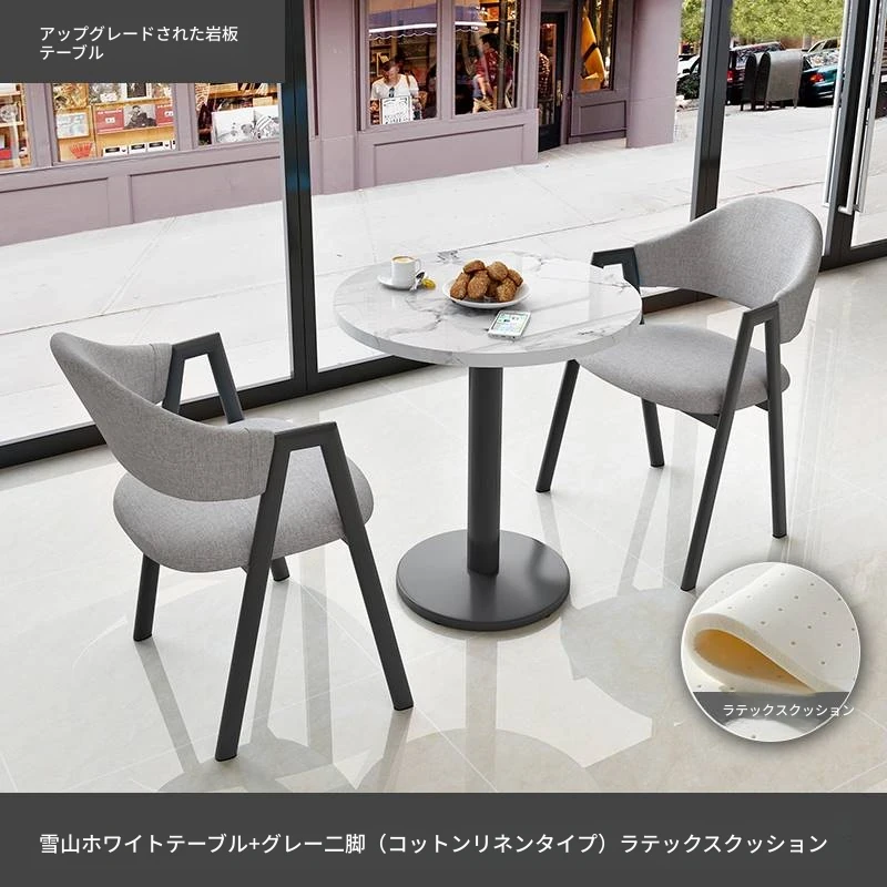 グレー二人掛け椅子+アップグレード岩板テーブル(コットンリネンタイプ)ラテックスクッション