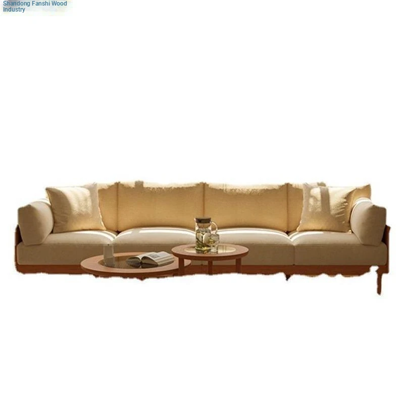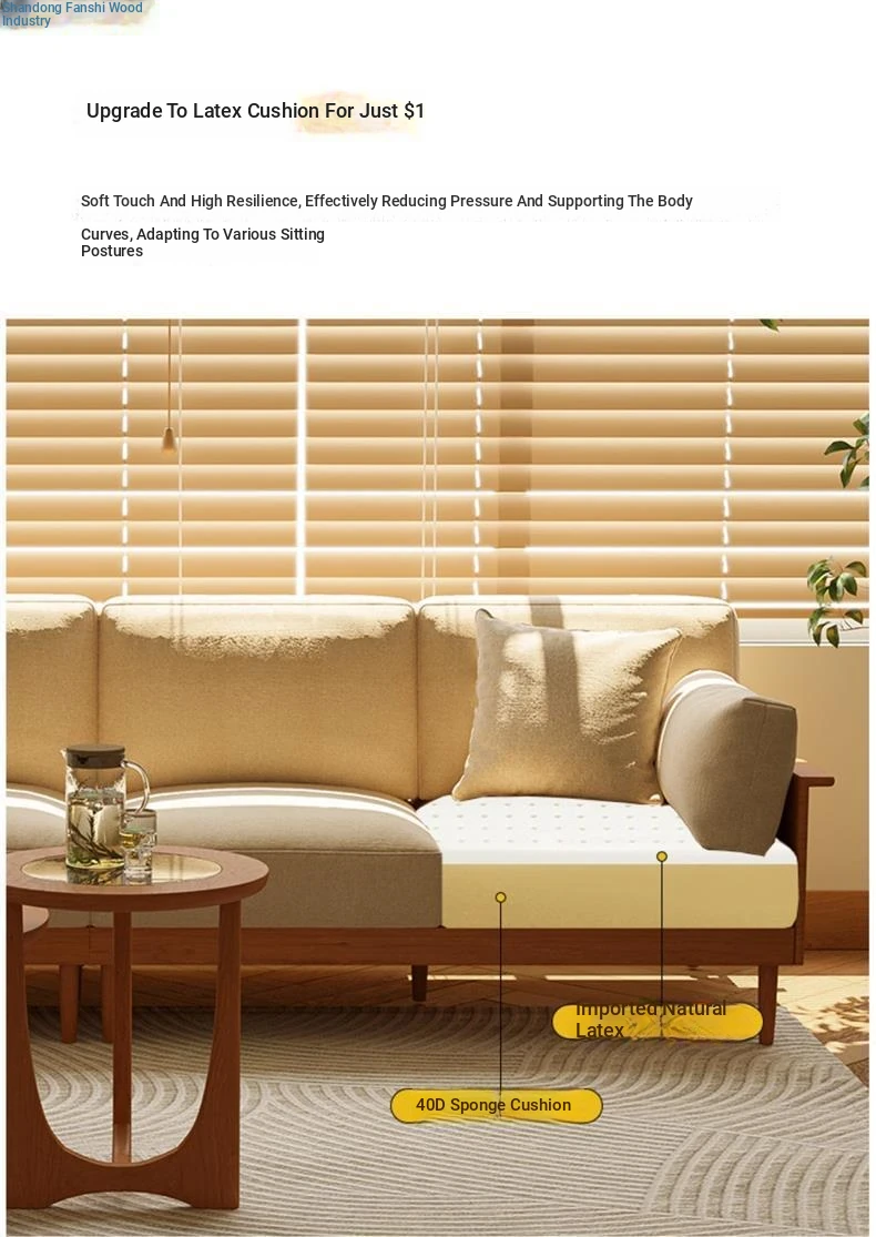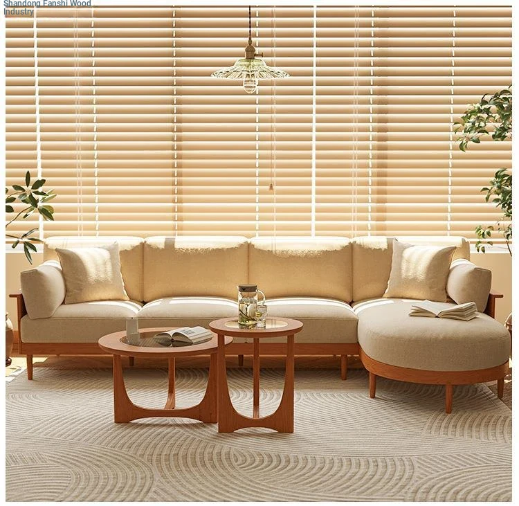 Modern Cherry Wood Japanese Style Solid Corner Sofa Set for Living Room - L-Shaped Minimalist Fabric Design for Small Spaces, Perfect for Couples