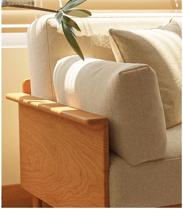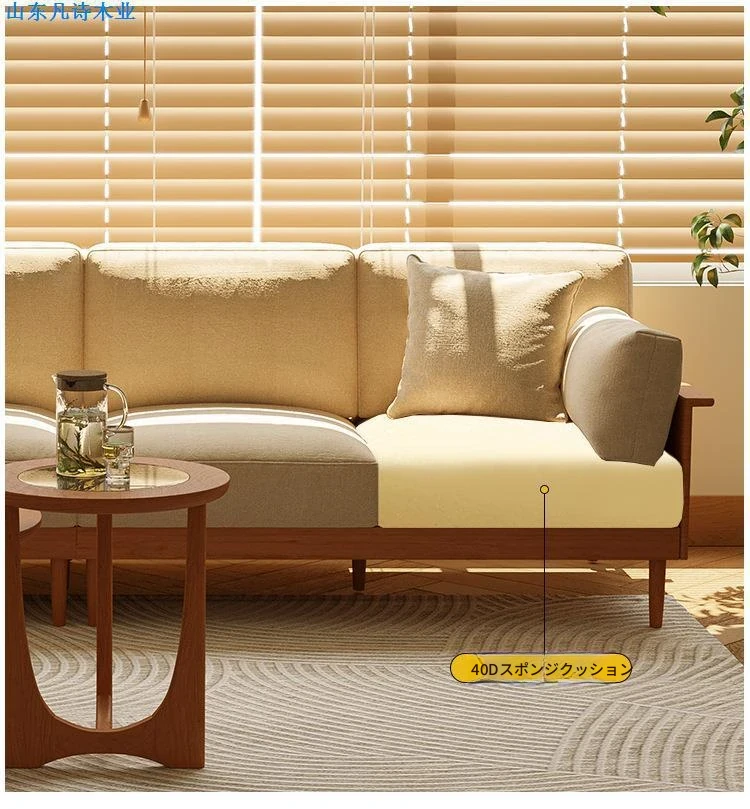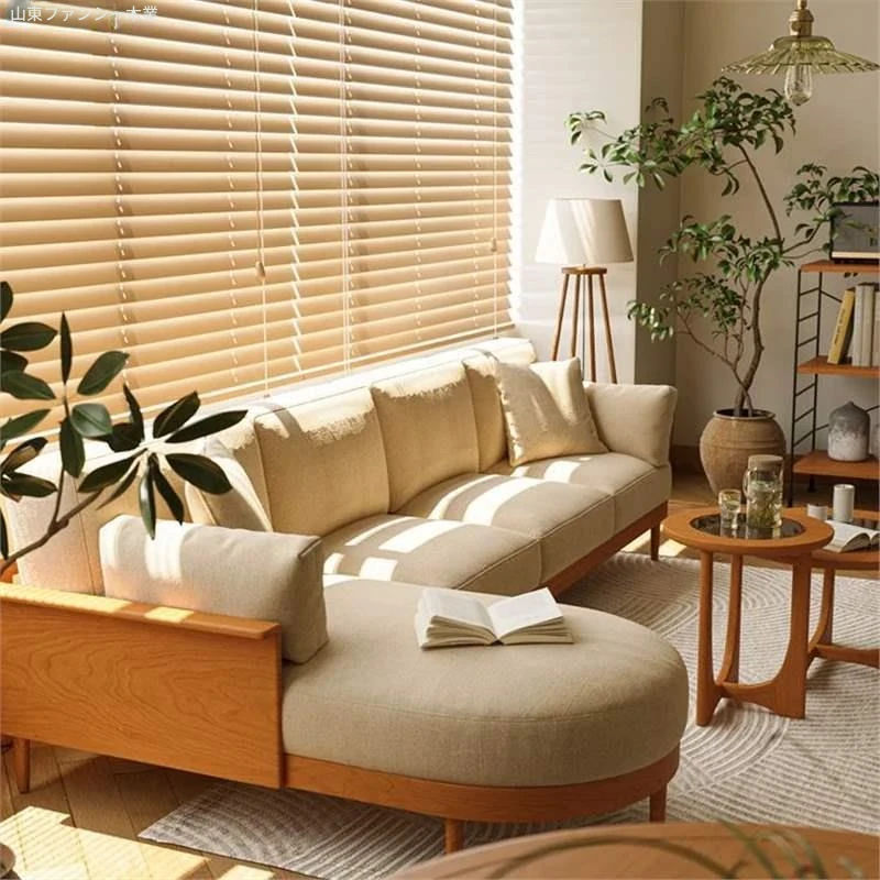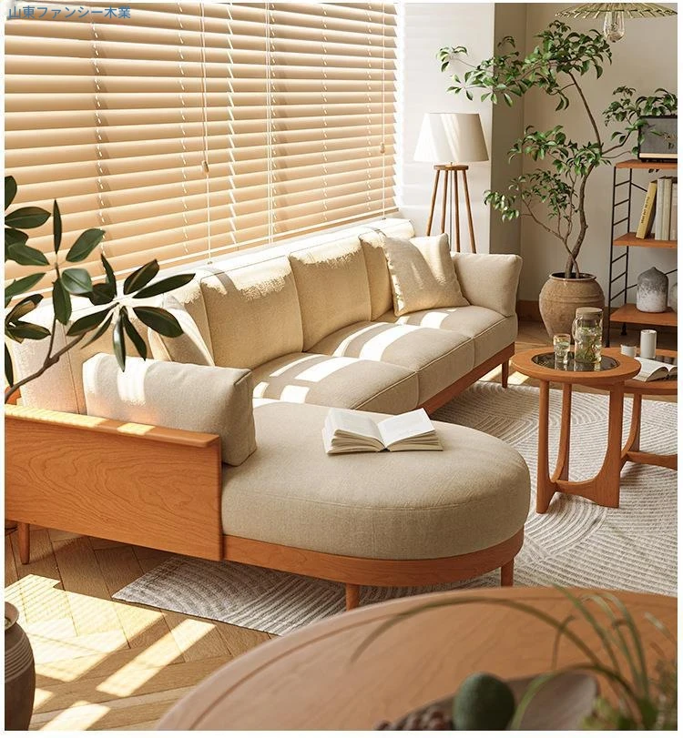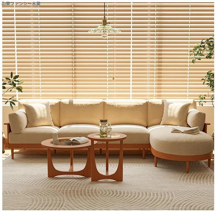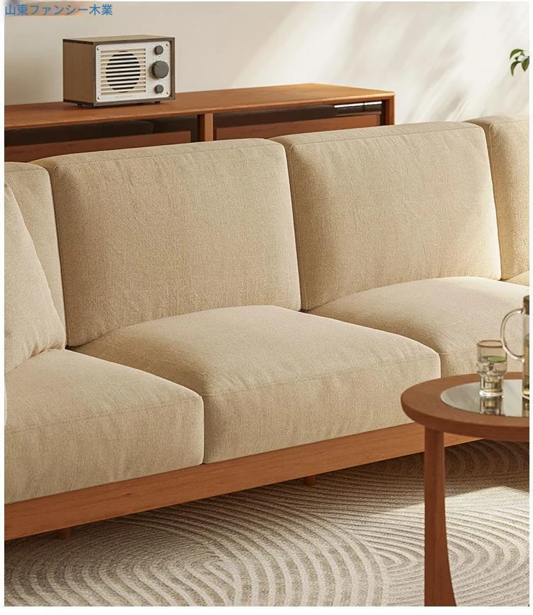 さくらんぼの木製日本式実木コーナーソファセット - モダンでシンプルなL字型、コンパクトなデザインの二人掛けリビング用ファブリックソファ。おしゃれな空間を演出し、快適なひとときを提供します!