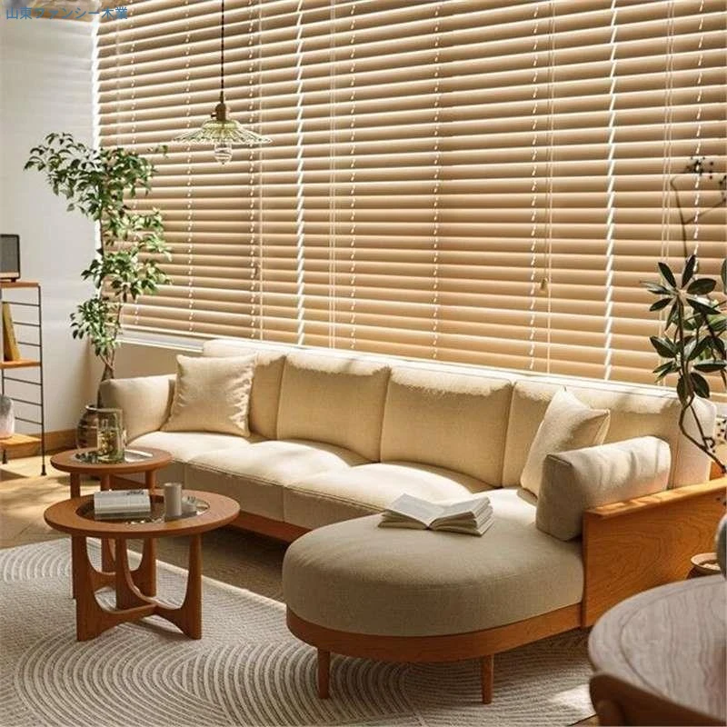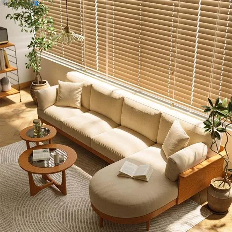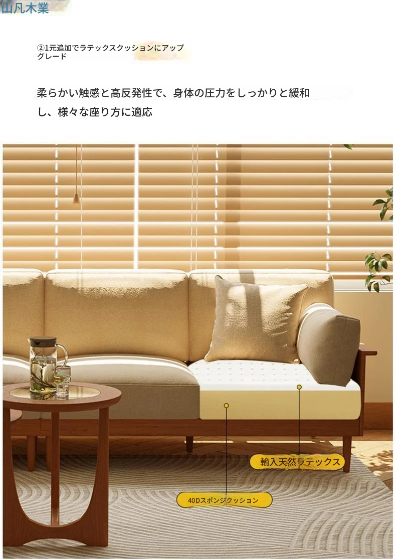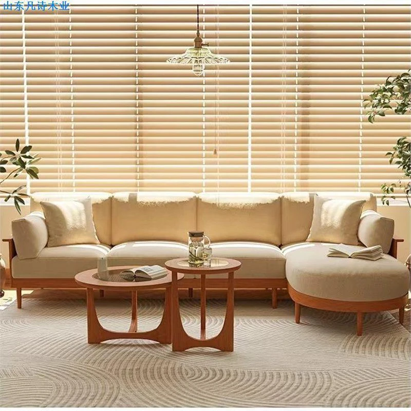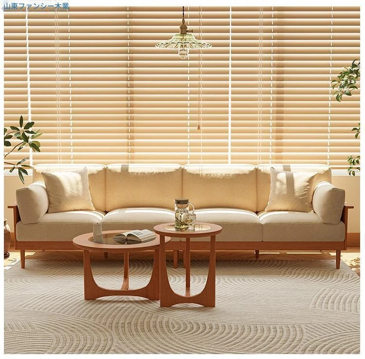 さくらんぼの木製日本式実木コーナーソファセット - モダンでシンプルなL字型、コンパクトなデザインの二人掛けリビング用ファブリックソファ。おしゃれな空間を演出し、快適なひとときを提供します!