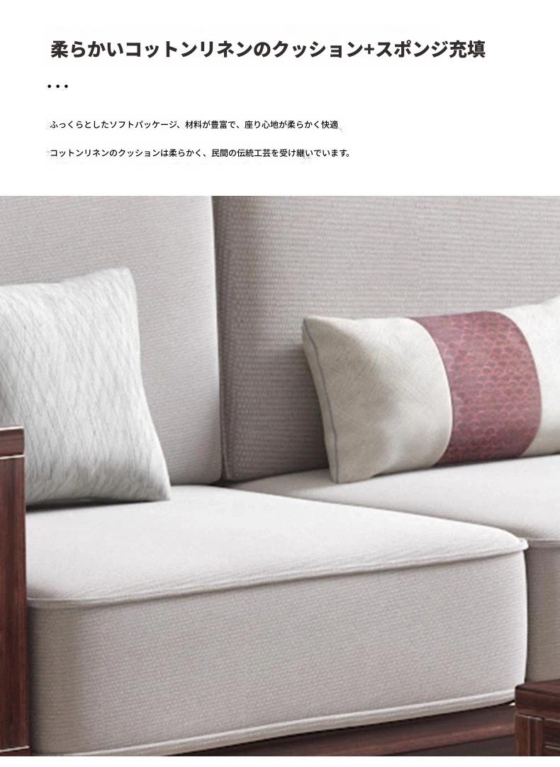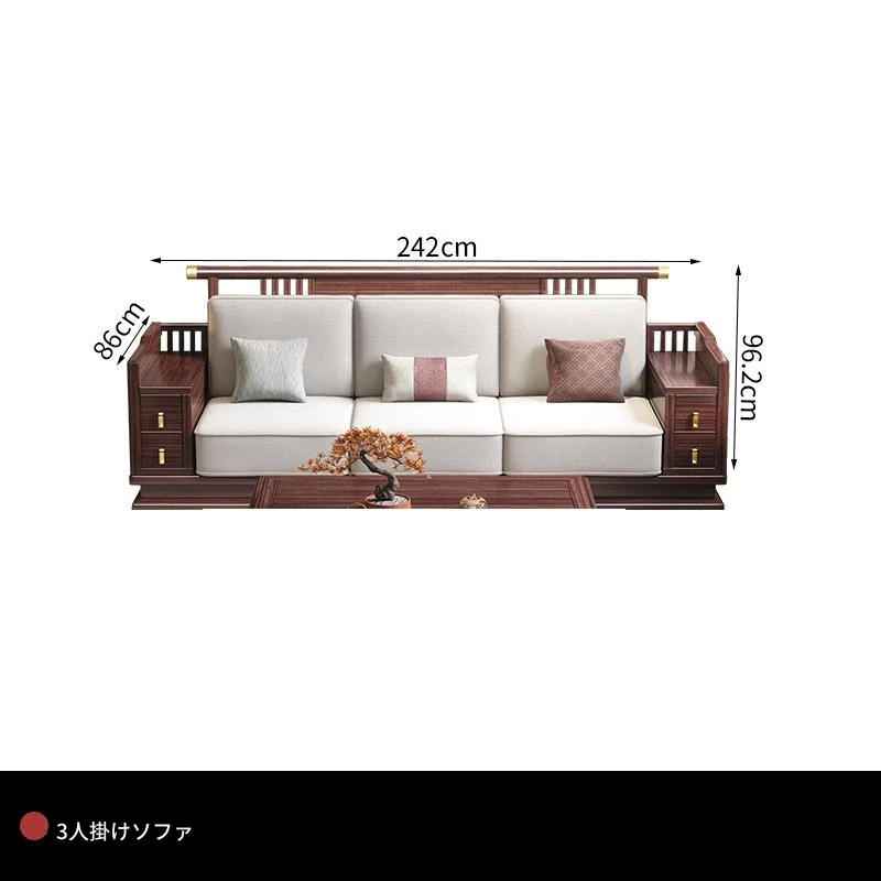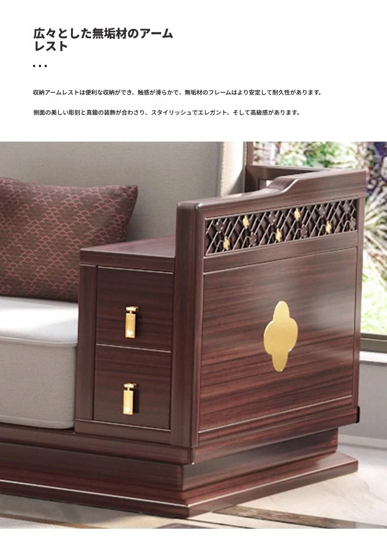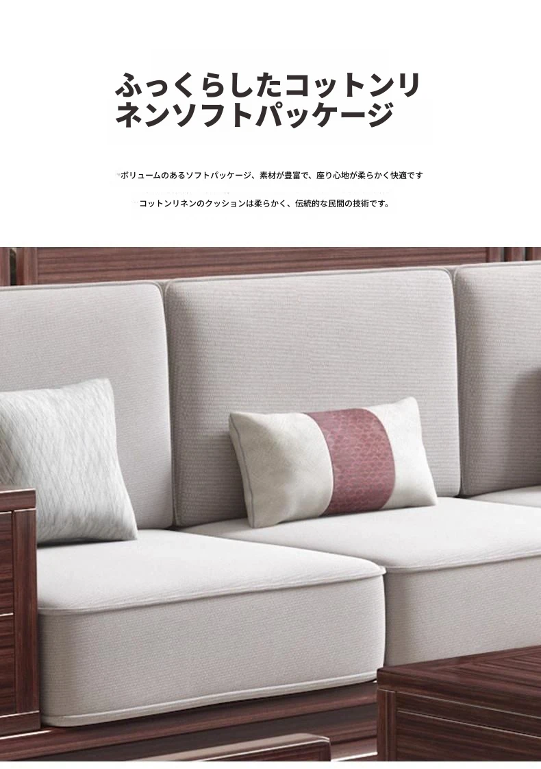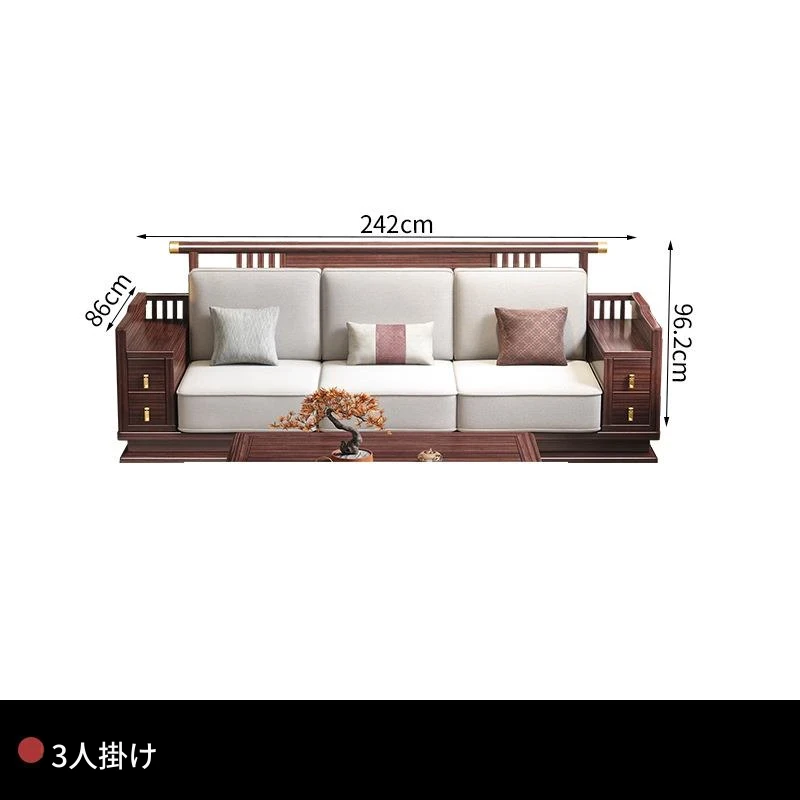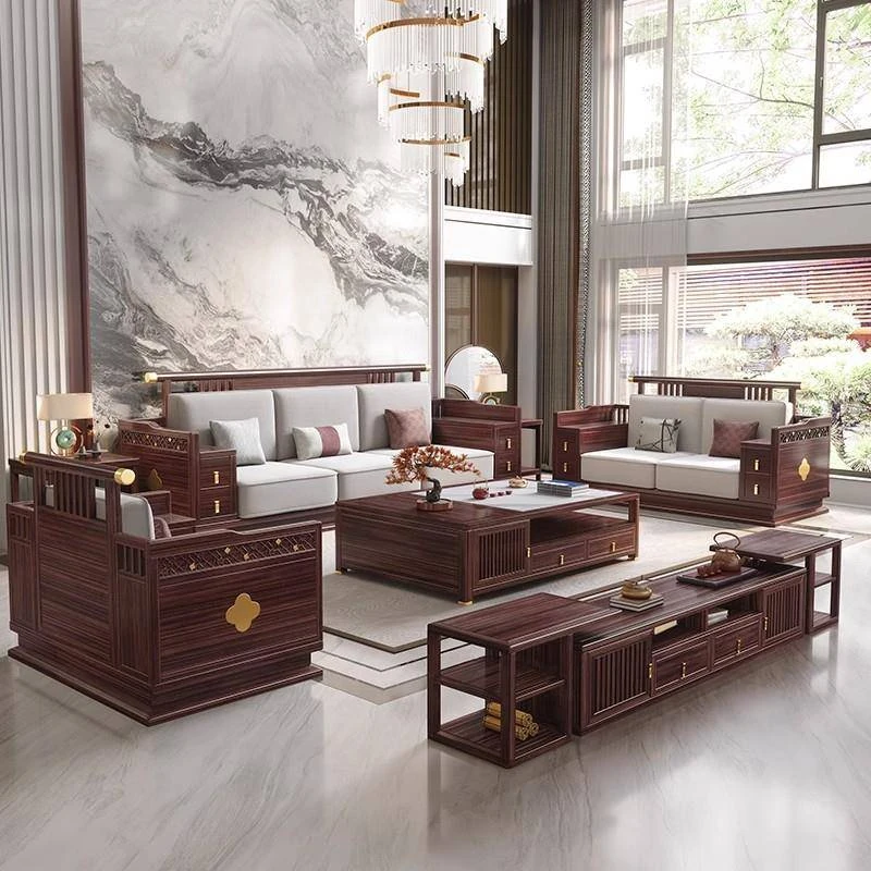 新中式スタイルの無垢材ソファセット - 高級ウッディー仕上げ、シンプルで洗練されたデザイン!大きなリビングルームや別荘にぴったりの家具です。快適なひとときを提供します!