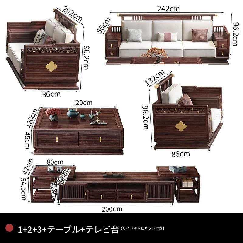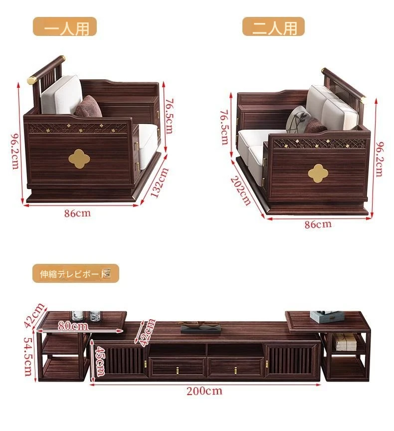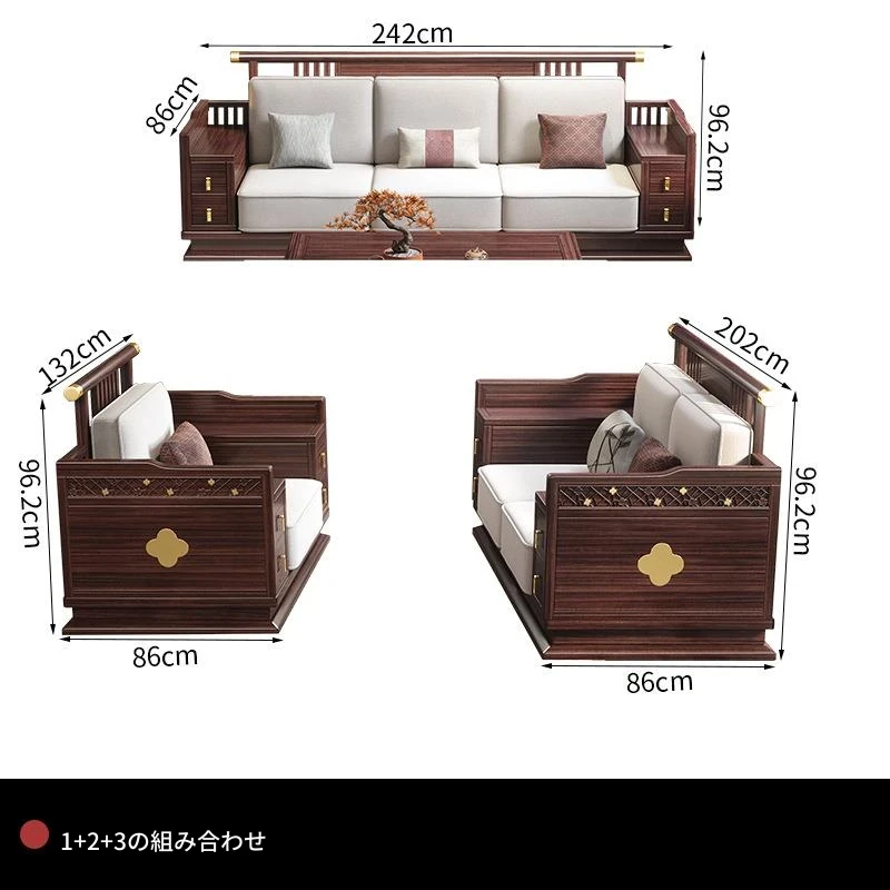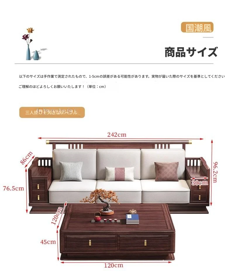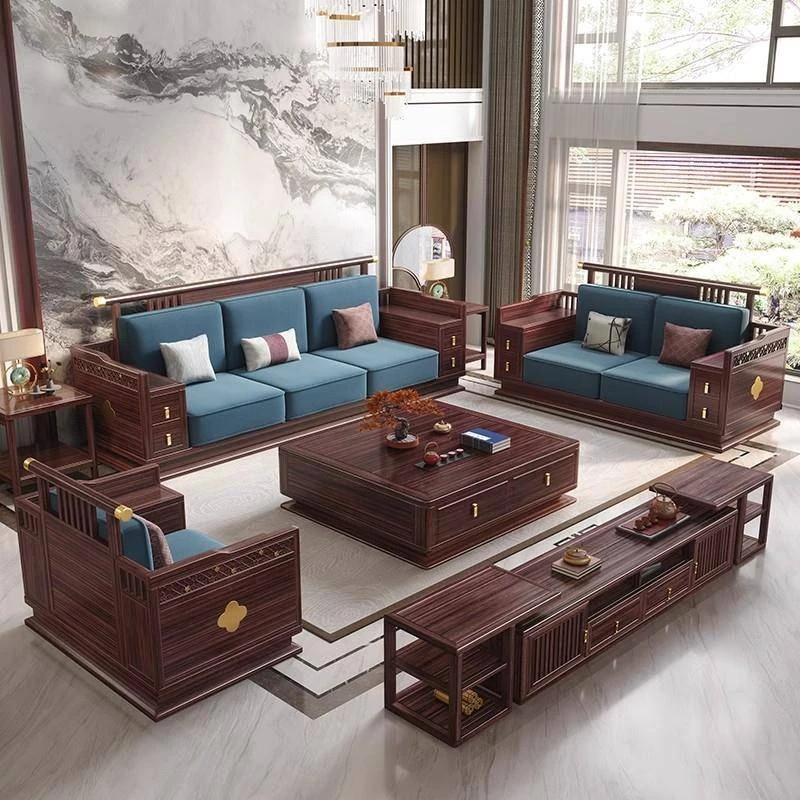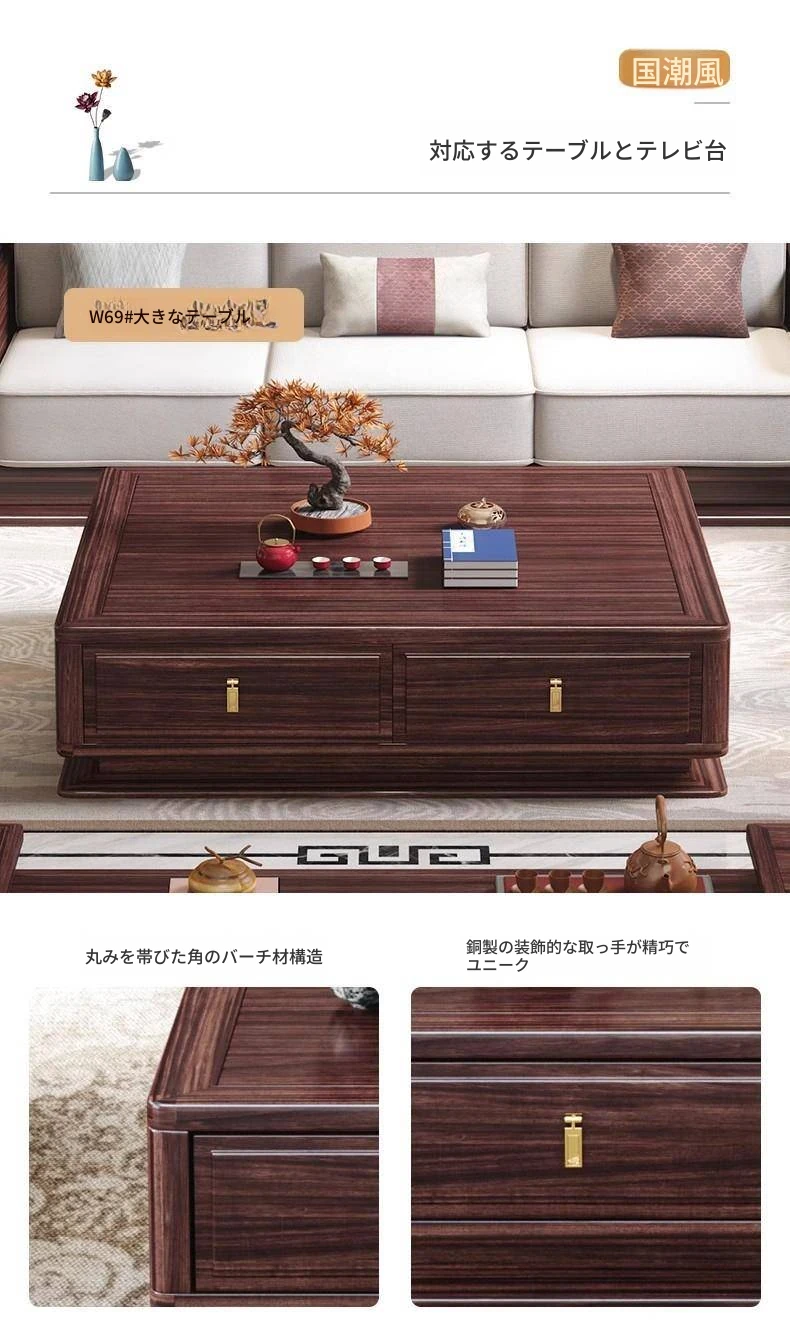 新中式スタイルの無垢材ソファセット - 高級ウッディー仕上げ、シンプルで洗練されたデザイン!大きなリビングルームや別荘にぴったりの家具です。快適なひとときを提供します!