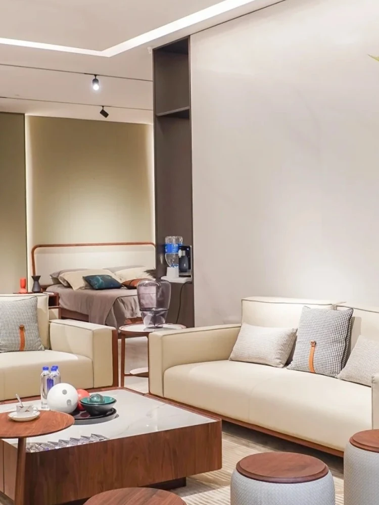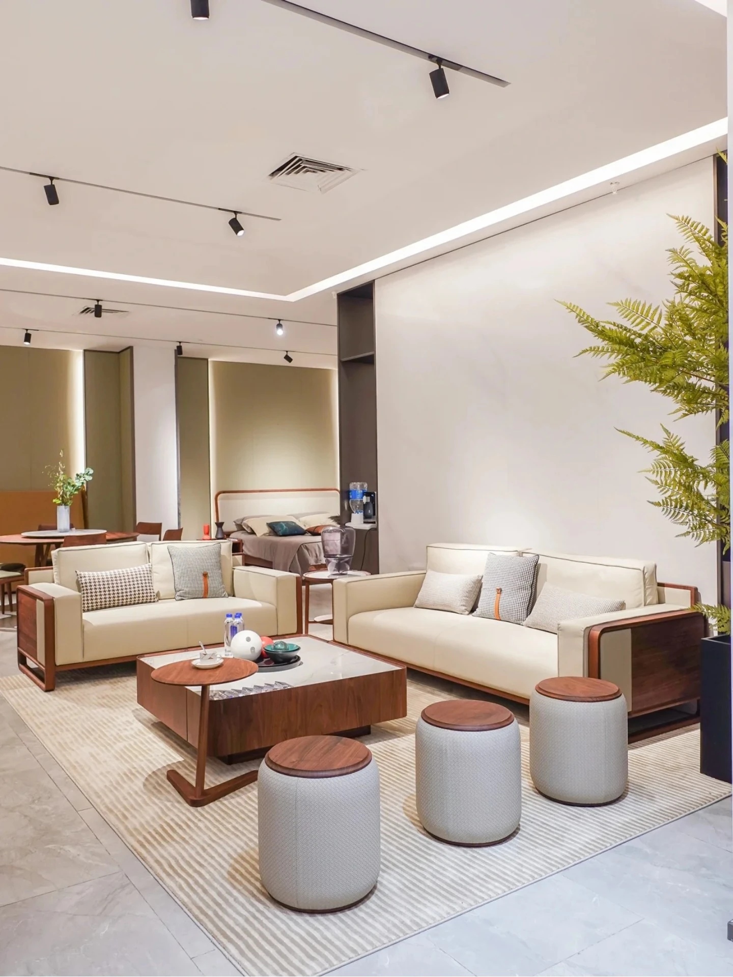 新中式無垢材ソファセット - モダンでシンプルなデザイン、広々としたリビングや接待スペースに最適!天然の木の温もりを感じる、心地よい空間を演出します。