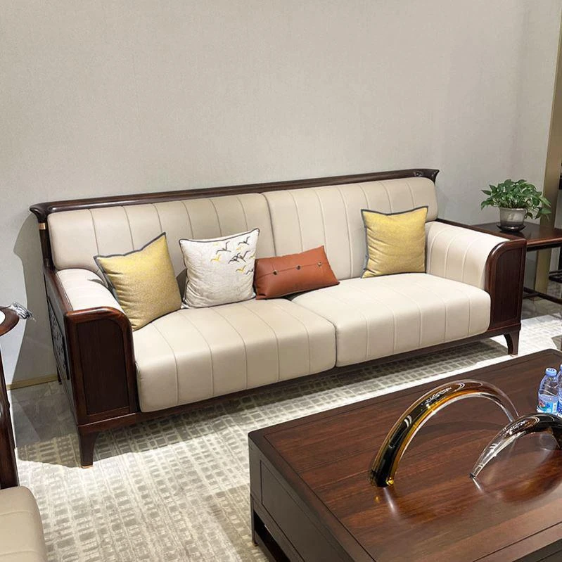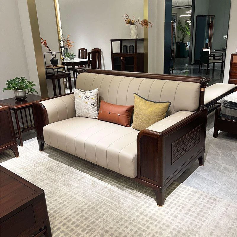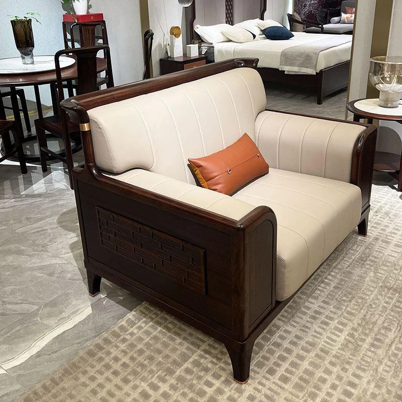 新中式スタイルの無垢材ソファセット|現代的でシンプルなデザイン|高級感漂う別荘にぴったり|禅の心を感じるウッディな黒檀ソファセットで、上質なリラックスタイムを実現!