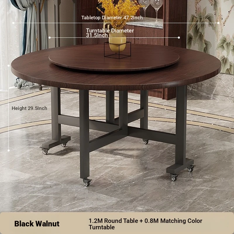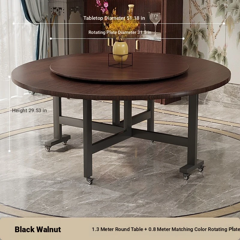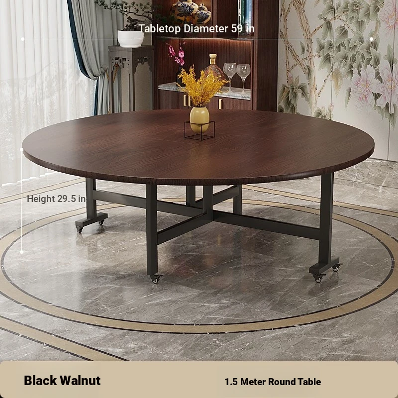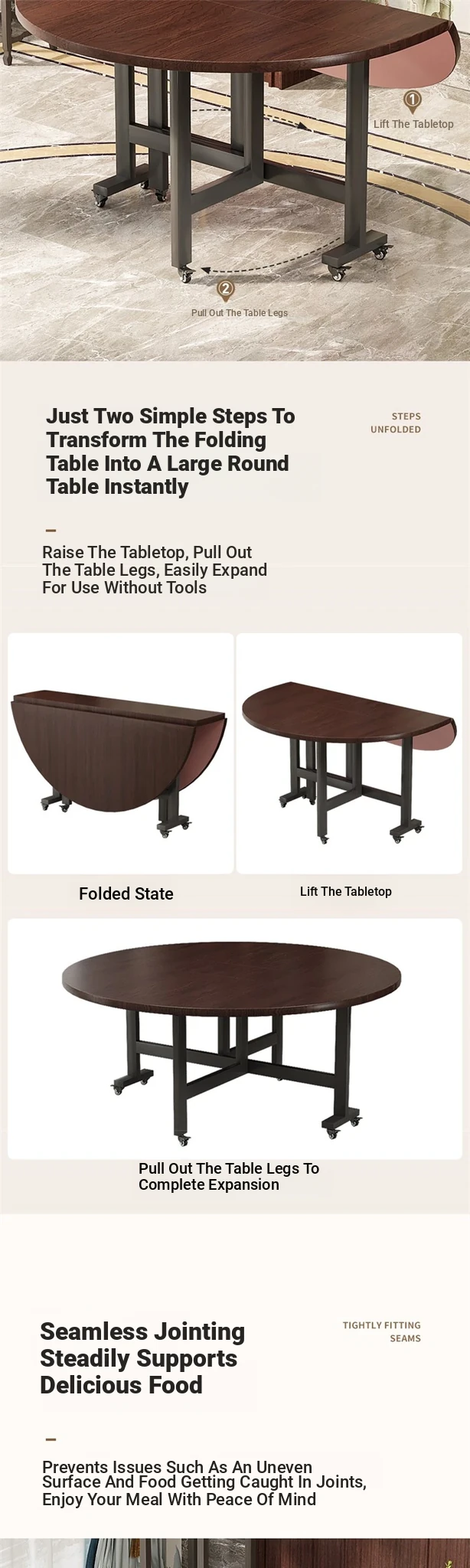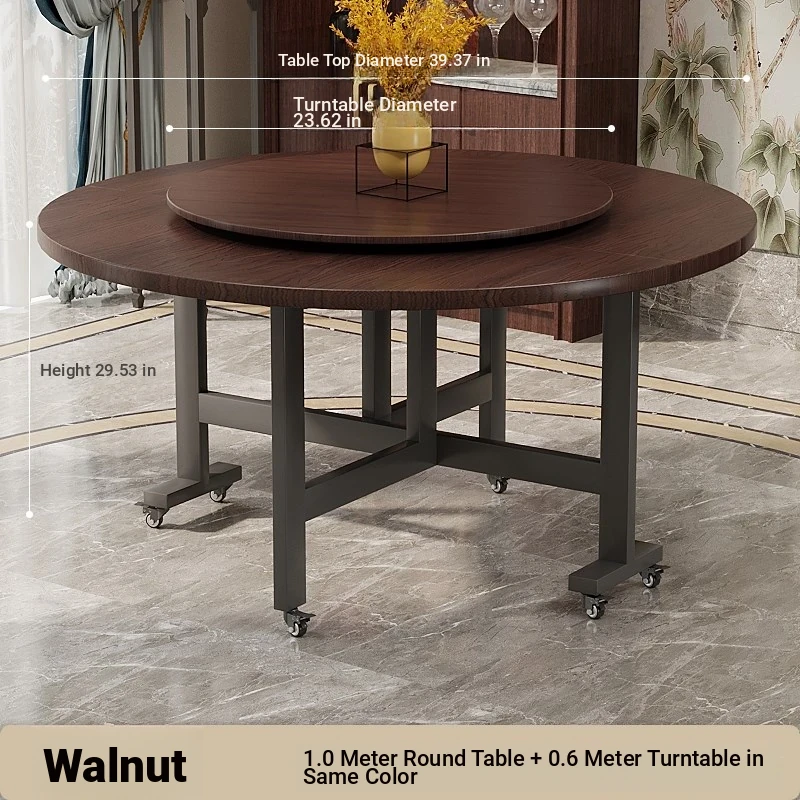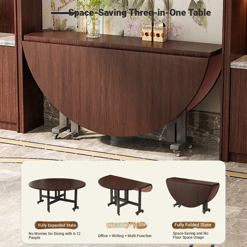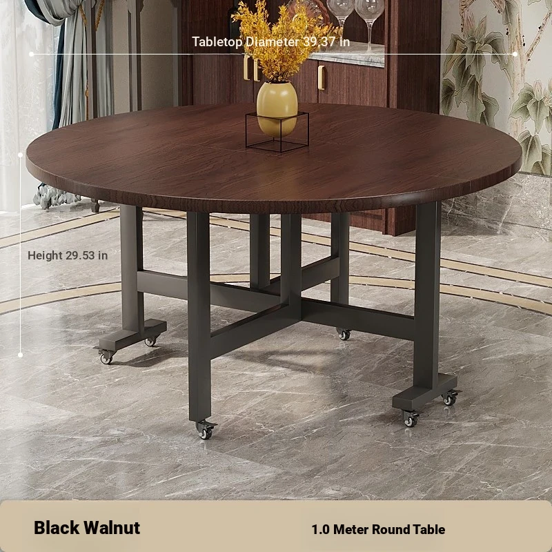 Modern Chinese Style Folding Round Table in Walnut Color - Versatile and Easy to Move, Perfect for Small Spaces and Group Dining!