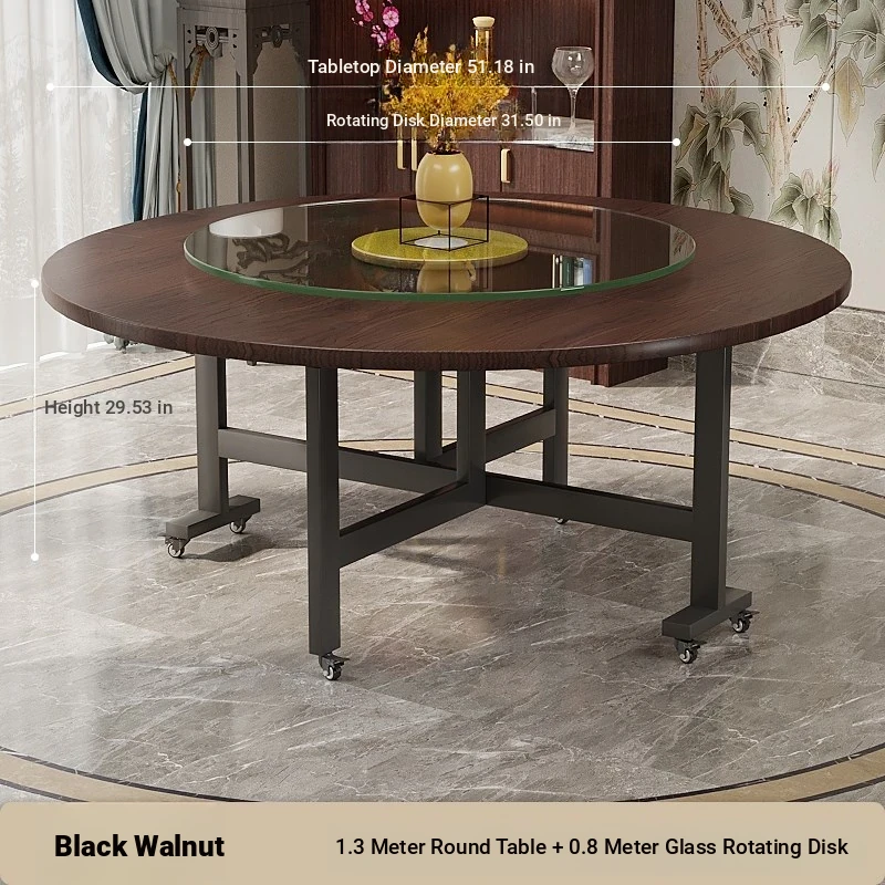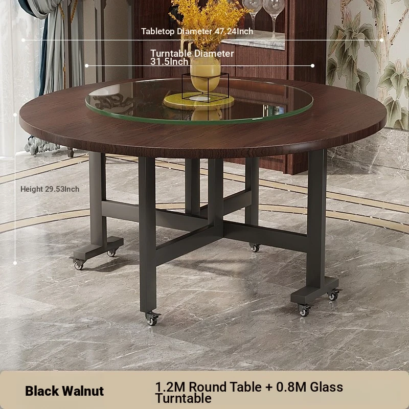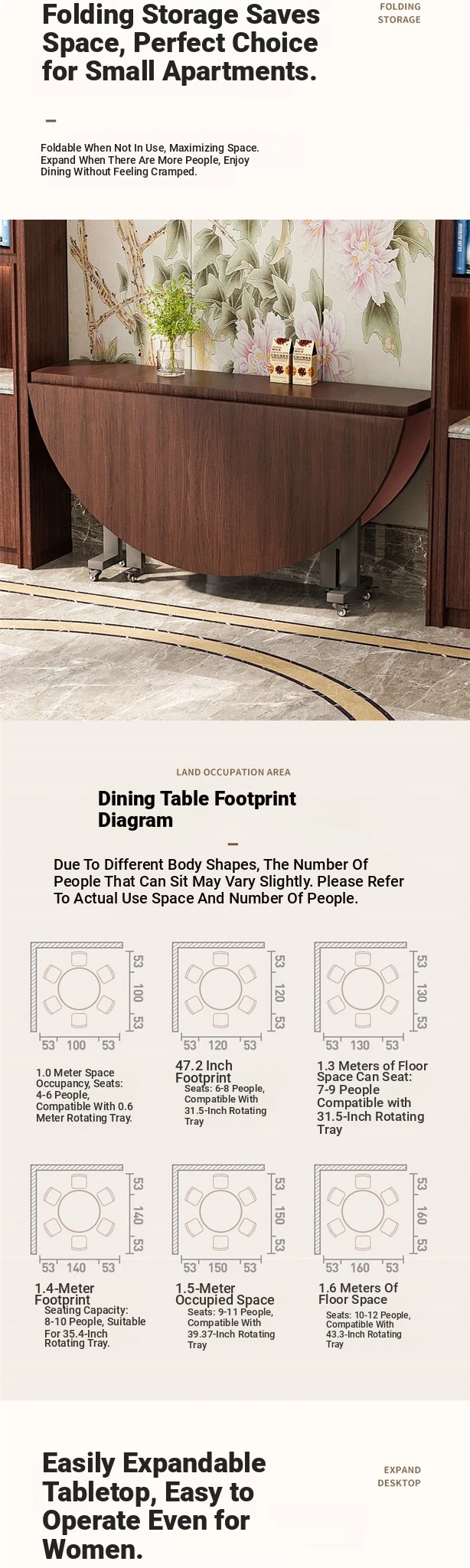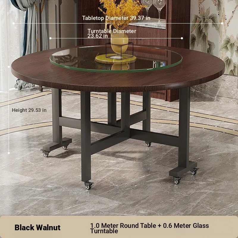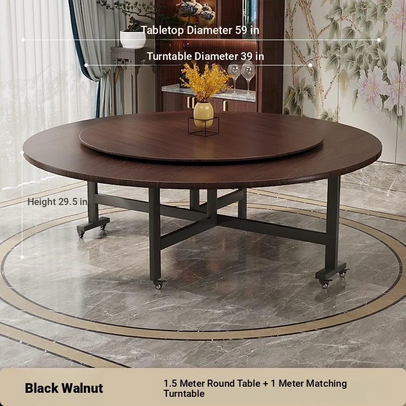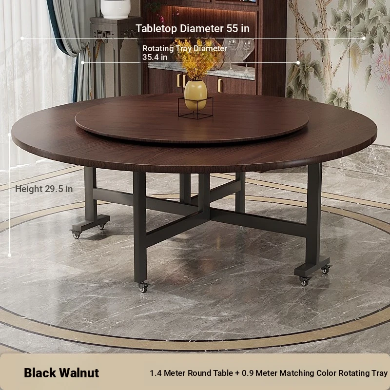 Modern Chinese Style Folding Round Table in Walnut Color - Versatile and Easy to Move, Perfect for Small Spaces and Group Dining!