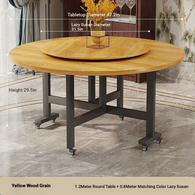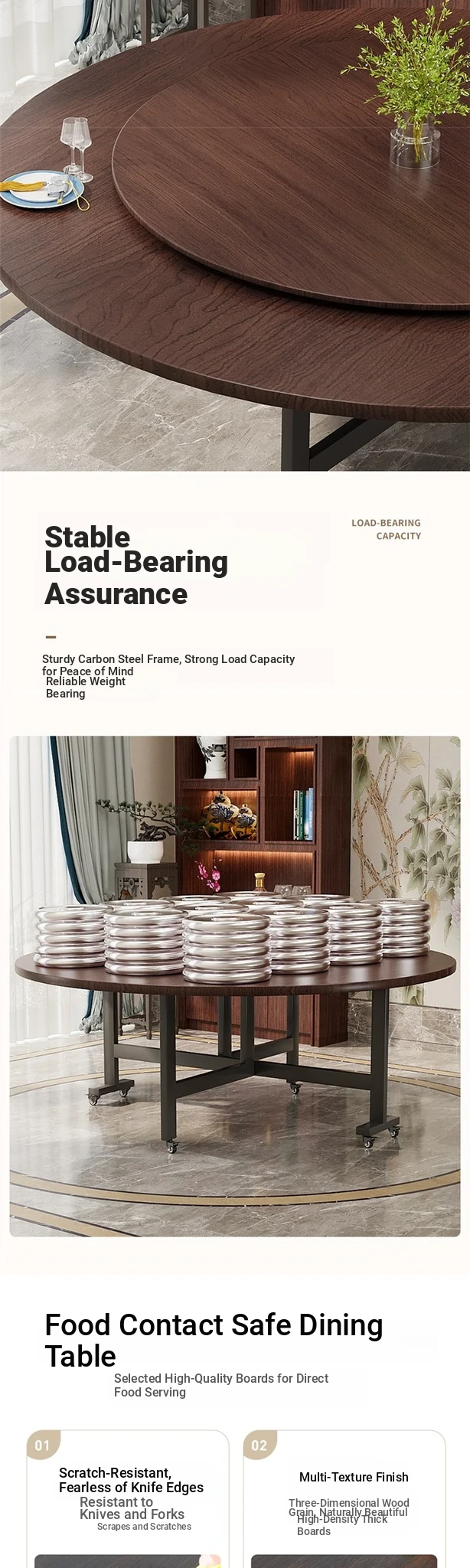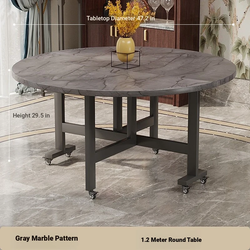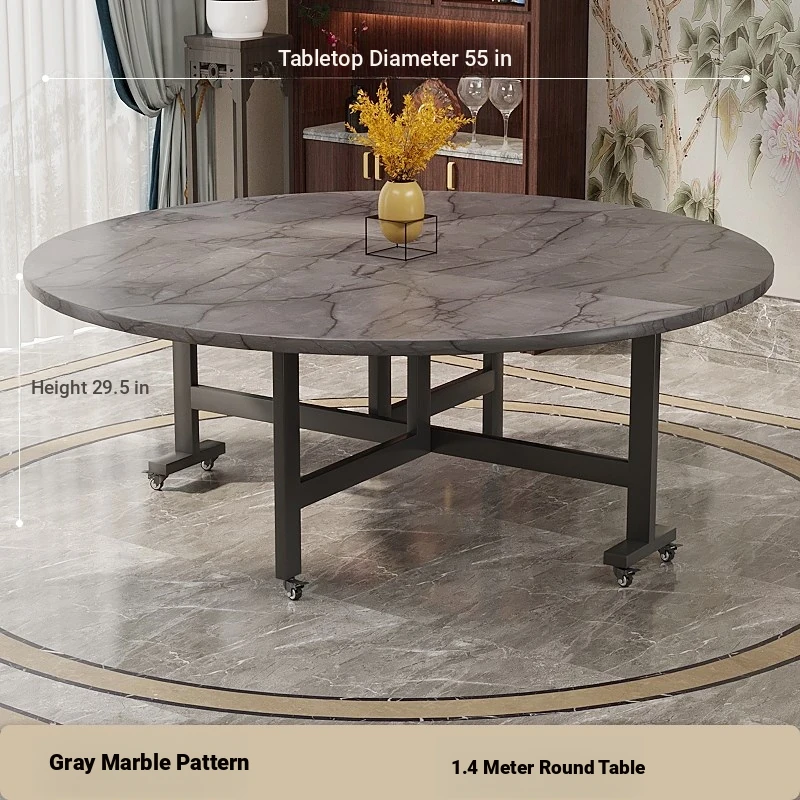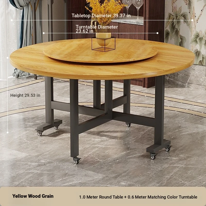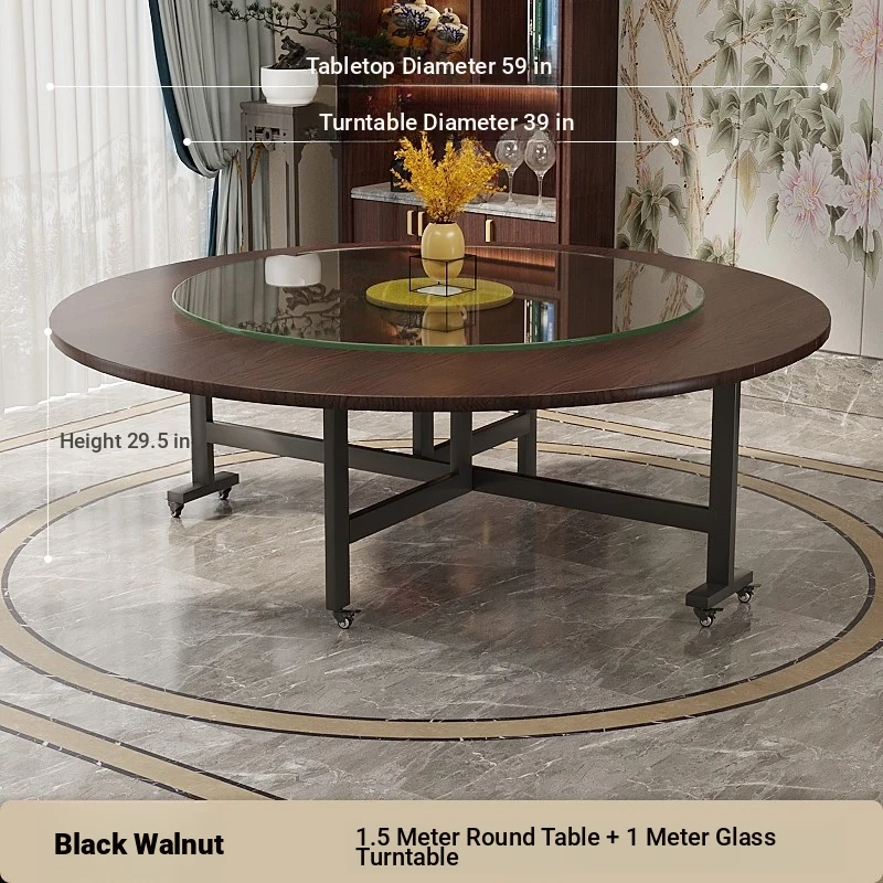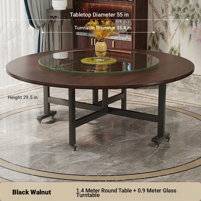 Modern Chinese Style Folding Round Table in Walnut Color - Versatile and Easy to Move, Perfect for Small Spaces and Group Dining!