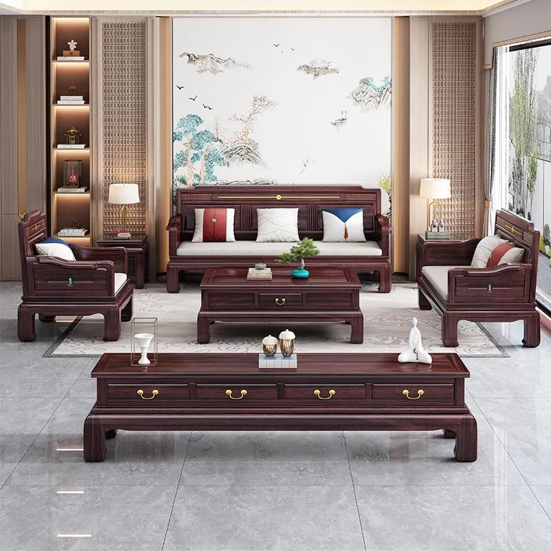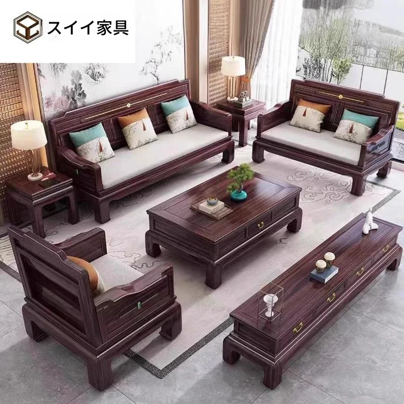 新中式ウッキン木全実木ソファー|豪華なヴィラ向け大サイズのモダン中華スタイルリビング家具。洗練されたデザインで、快適さと美しさを兼ね備えた理想の空間を演出します。