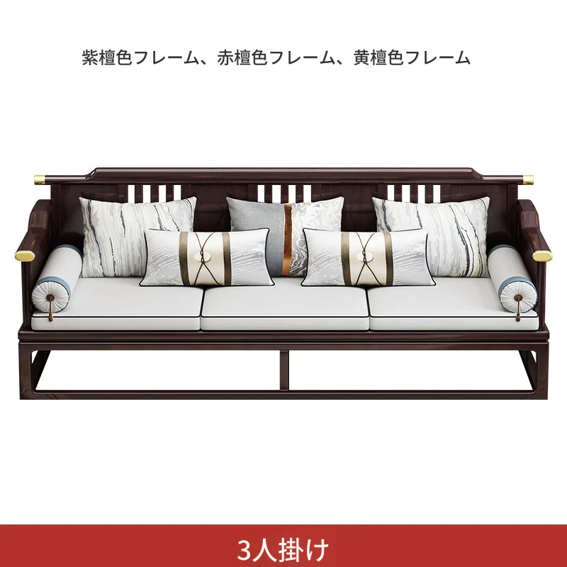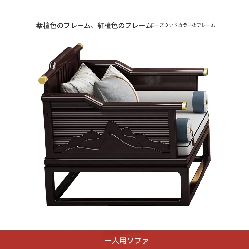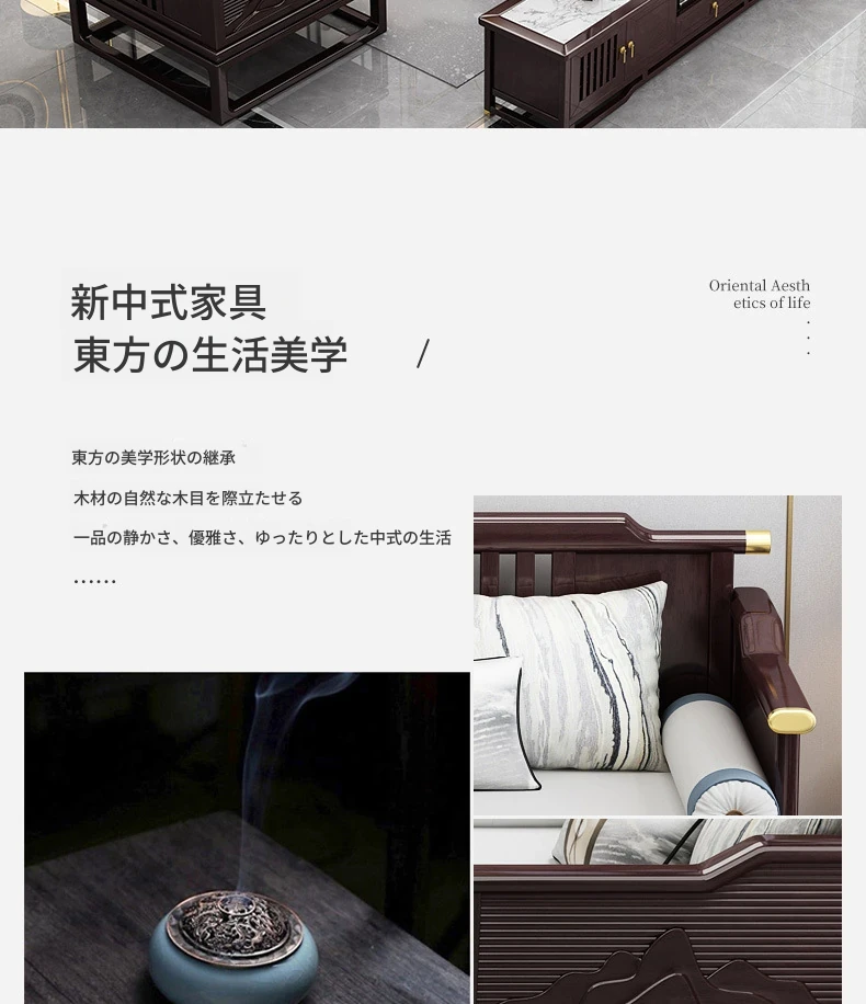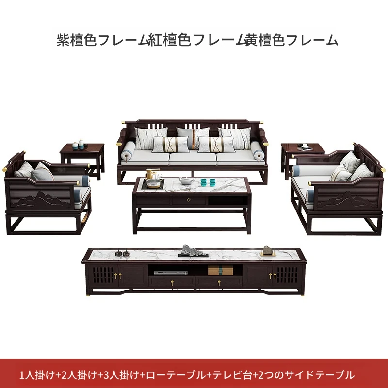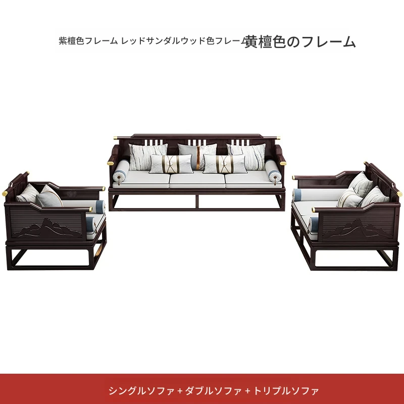 新中式全実木ソファセット - モダン&ミニマリスト、大型住宅向け、禅の趣を持つ軽奢華な別荘スタイル、中国風リビング家具。心地よい空間を演出し、あなたの生活に和の美を添えます!