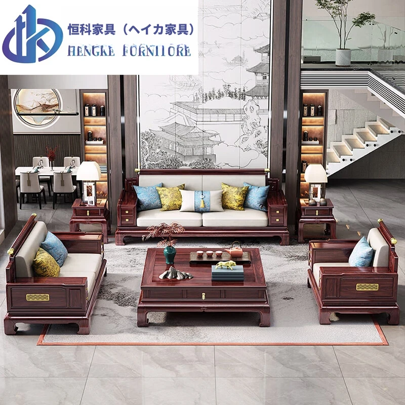 新中式ウッドサンドの現代的な別荘スタイル【HKDY015】古典的なリビングルーム用、冬夏兼用の広々としたデザイン。心地よさと高級感を兼ね備えた空間で、特別なひとときをお楽しみください。