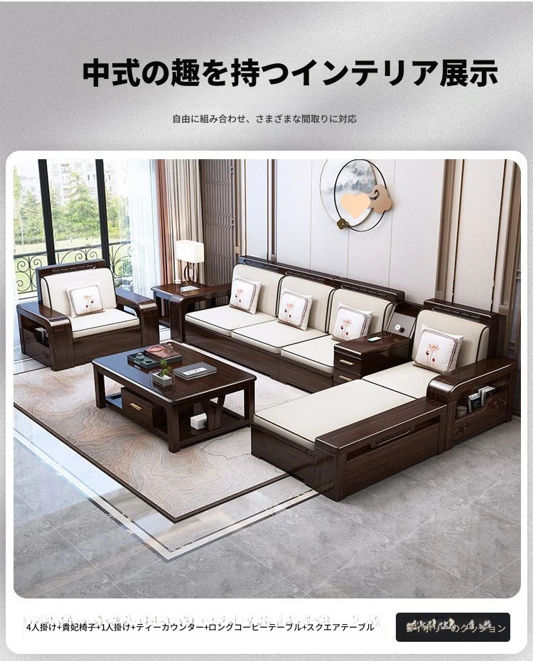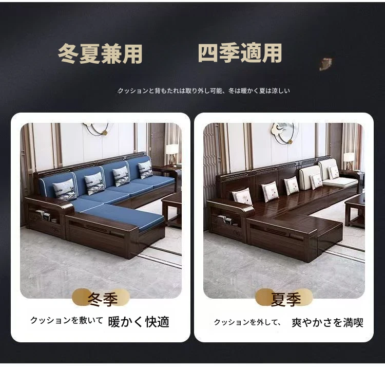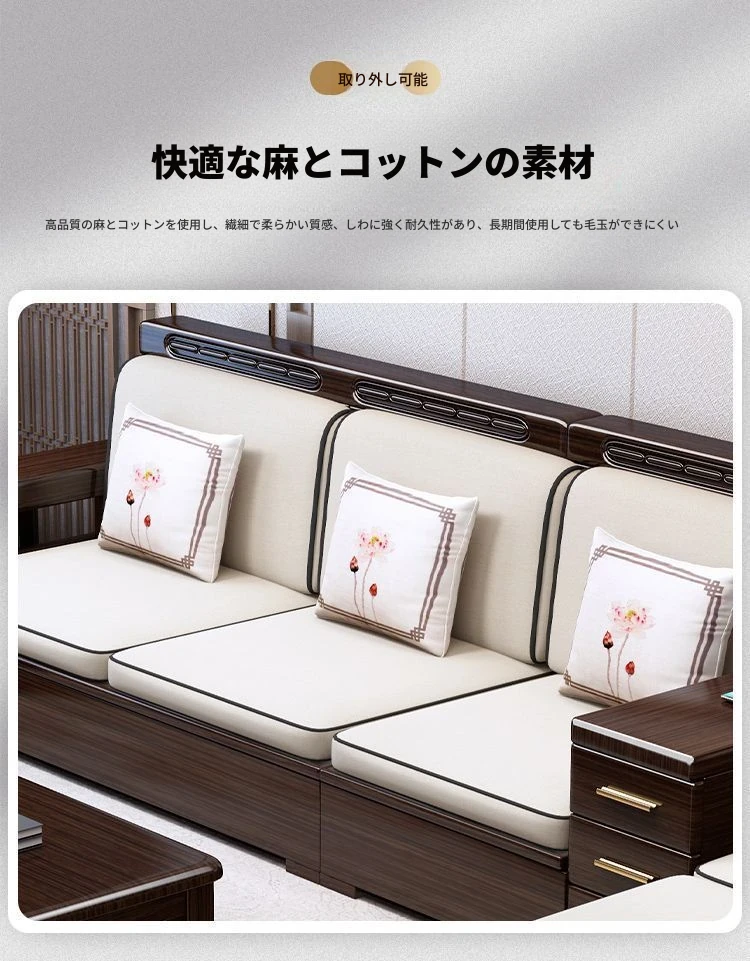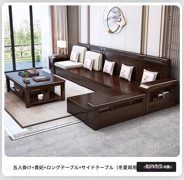 GYR新中式紫金檀木ソファセット|現代的なデザインで、コンパクトなリビングにぴったり!冬夏両用で快適、収納機能も充実。上質な木材が生み出す優雅なひとときをお楽しみください。