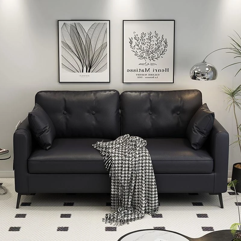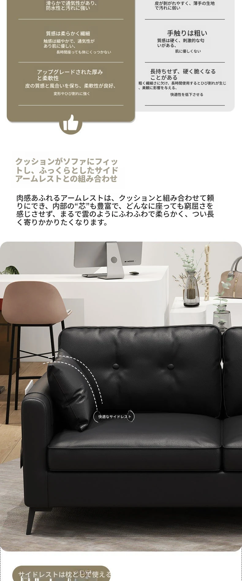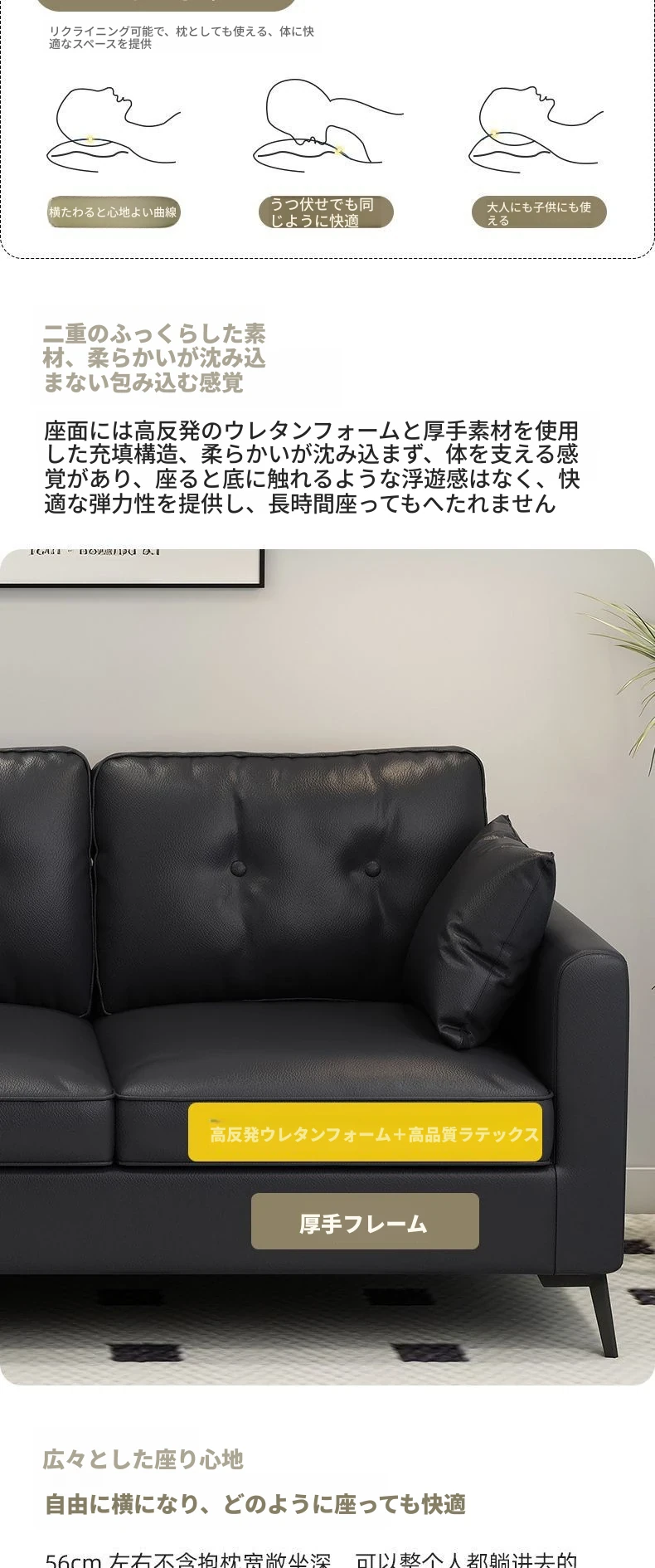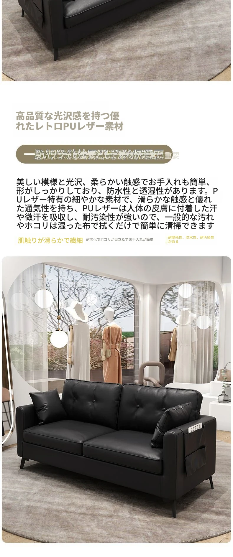 おしゃれなミニマリストデザイン!小型リビングやオフィスに最適な現代的なイタリアンレザーソファ。ビジネス会議やアパレルショップの接客にもぴったり。快適さとスタイルを両立した一品です!