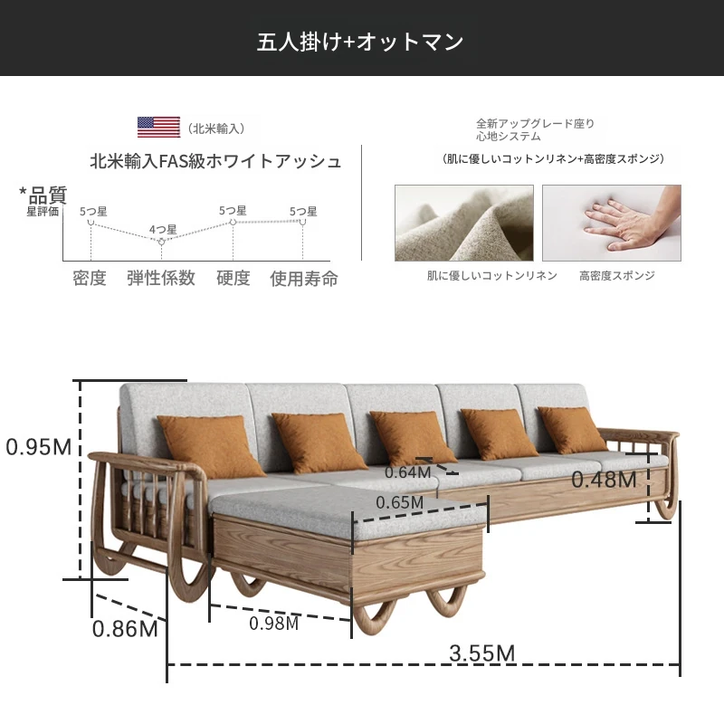 五人用ソファ【360*86*86】