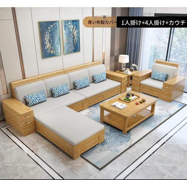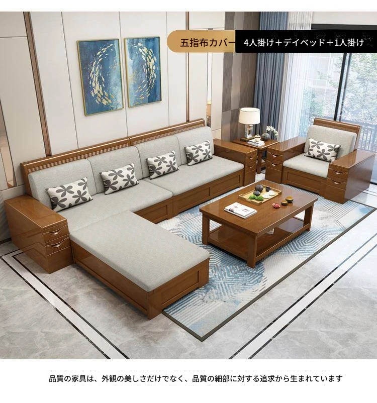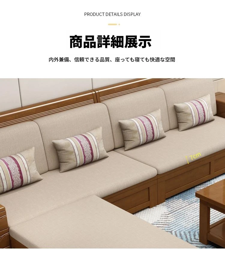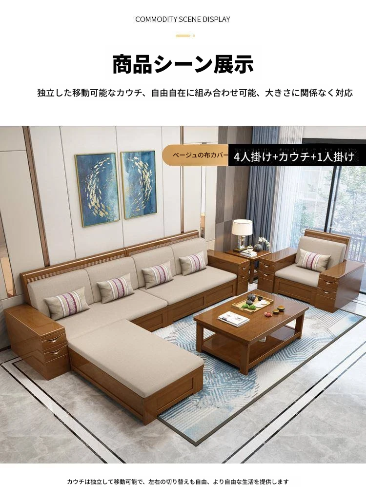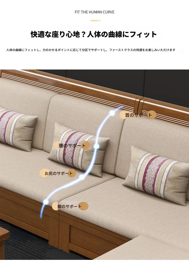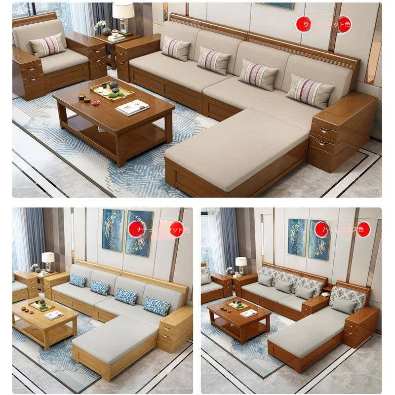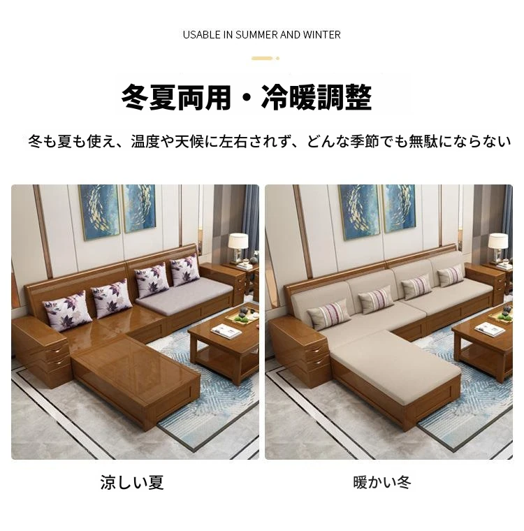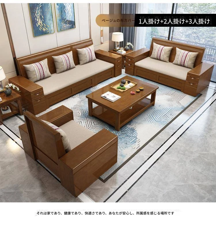 新中式スタイルの無垢材ソファ|冬も夏も快適!モダンでシンプルなデザイン、小型住宅にぴったりな組み合わせソファ。おしゃれなリビングを演出します!