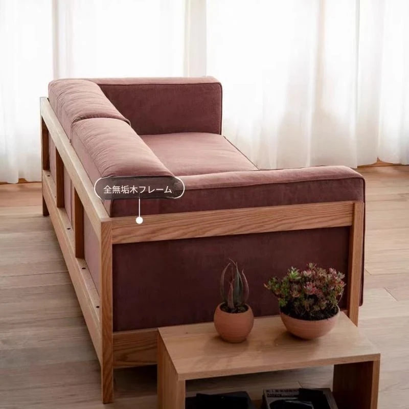 モダンミニマリズムの無垢材ソファ|北米産ウォールナット&ファブリック|純粋な無垢オーク使用|おしゃれなリビングにぴったりの高品質家具!