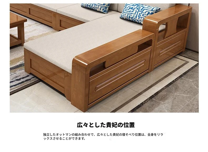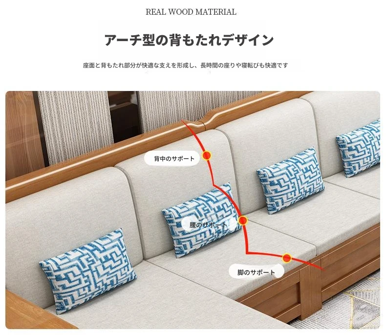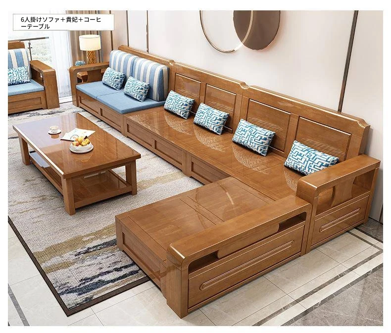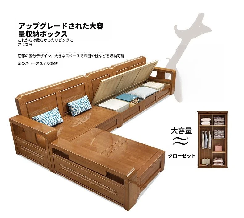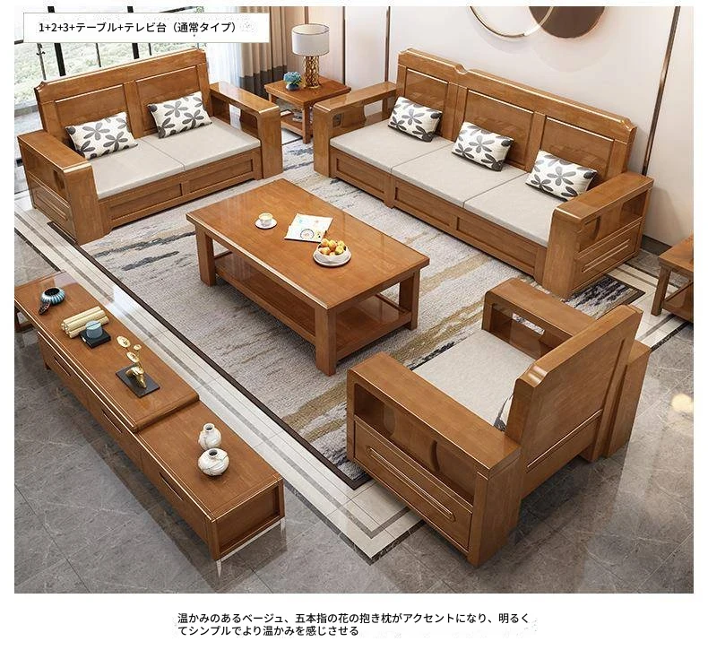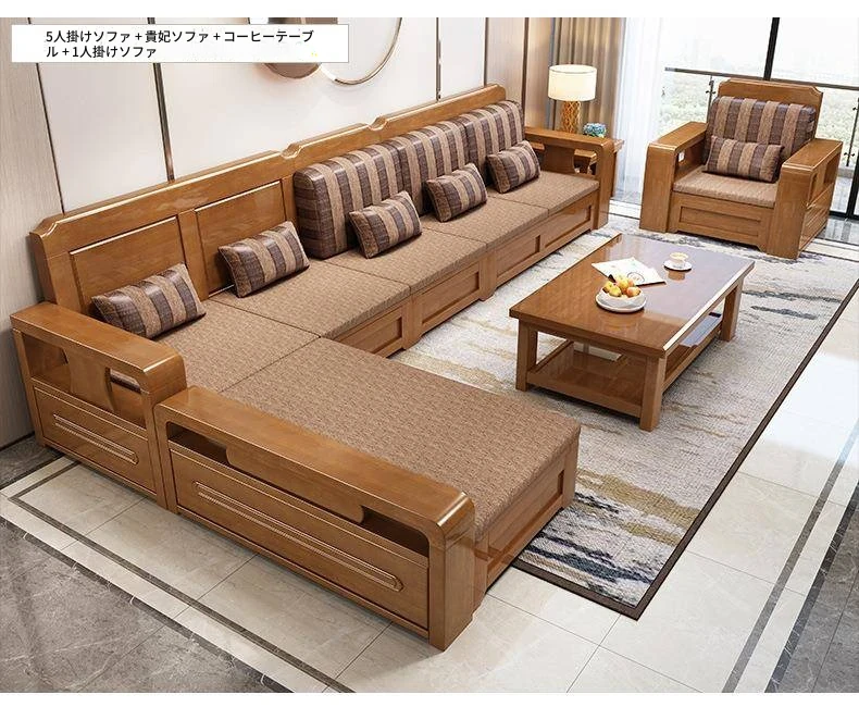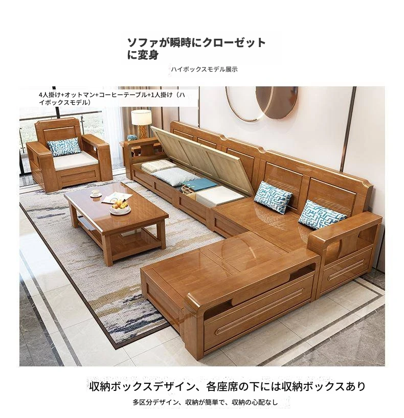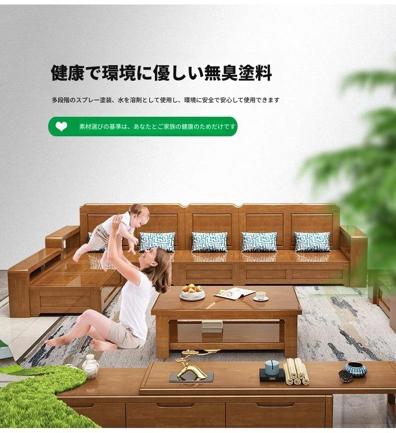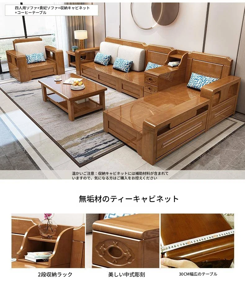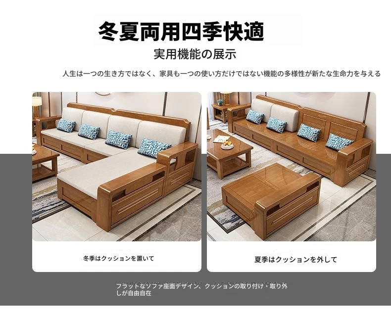 新中式スタイルの無垢材ソファセット - モダンでシンプルなデザイン、経済的で冬夏兼用の小型収納家具。おしゃれなリビングを演出し、スペースを有効活用!